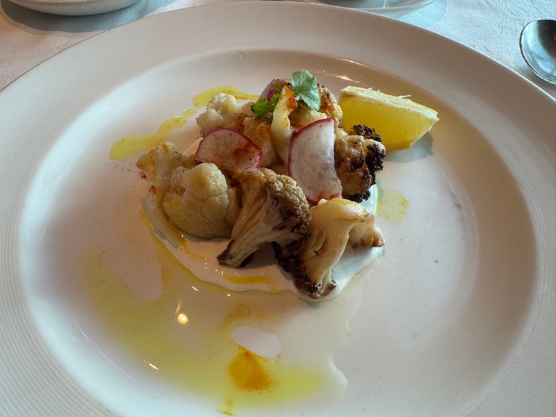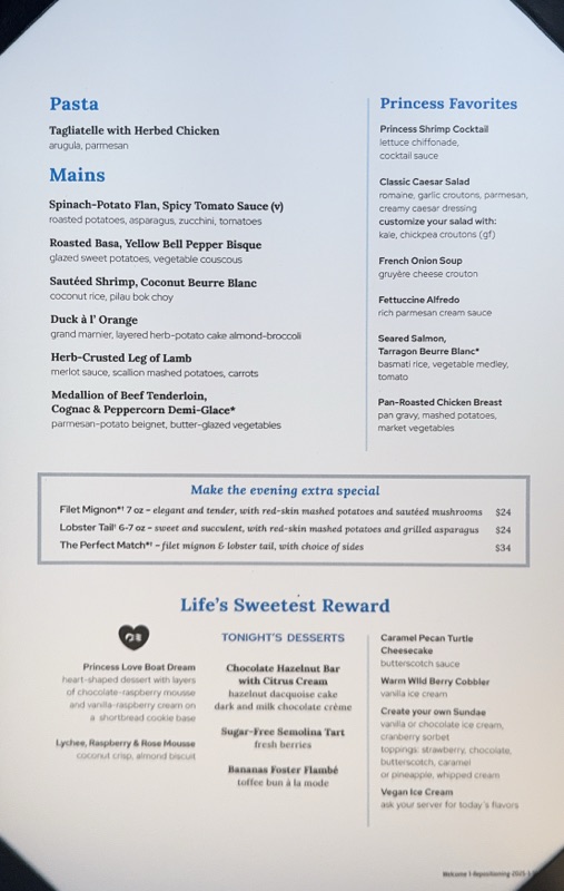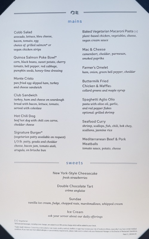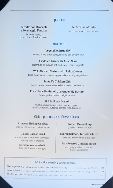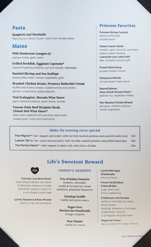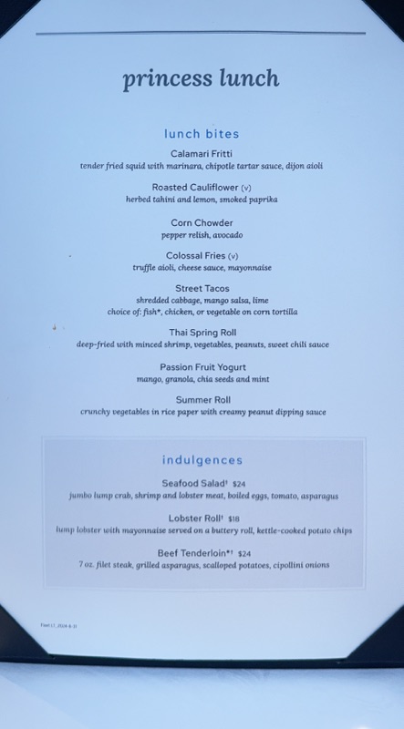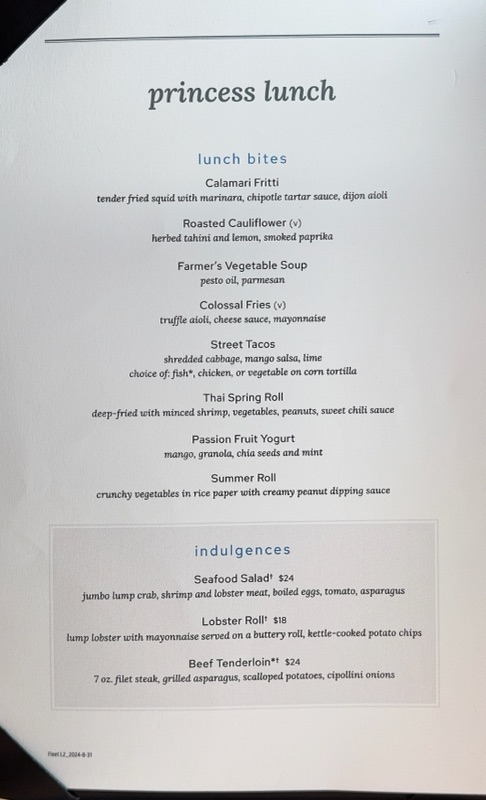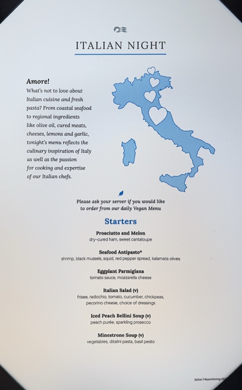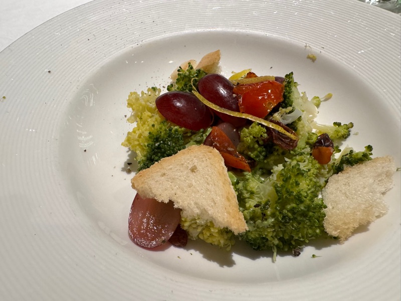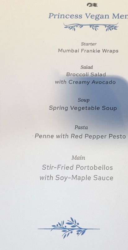 I haven’t been posting the vegan menu because it’s exactly the same as on prior cruises, but am posting this one because this broccoli salad is soooo good.