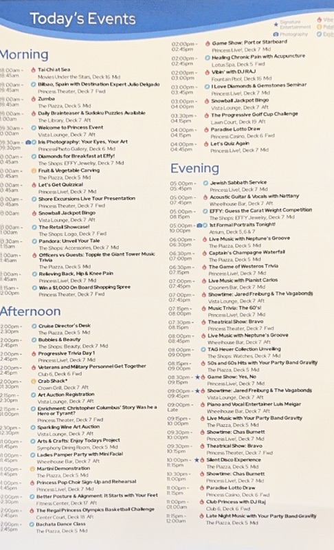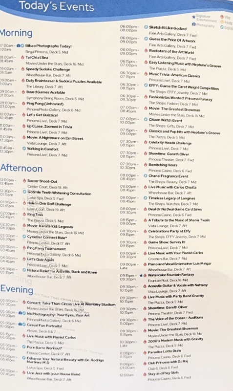 G has a theory that there are a thousand different cruises taking place on every ship, coupled with a belief that everyone has to be somewhere at any given moment. Determined to prove that, I wandered up to the Horizon Court Buffet and out to the Lido pool area, then to the Retreat Pool and down to the casino, through the Piazza and then I thought I’d go to tea, but it wasn’t in the Allegro Dining Room where I’d expected it would be, and so it was either in one of the other dining rooms or had been discontinued altogether (checking the Patter later told me it is held in the Concerto Dining Room, but no matter. We have a lot of sea days with afternoon teas to look forward to). And I finally settled in the library to listen to the fervent card games competition taking place in there and watch the intense puzzle putting-togethering and await the PES Lounge, starting at 4:30pm in the Vista-less Lounge.