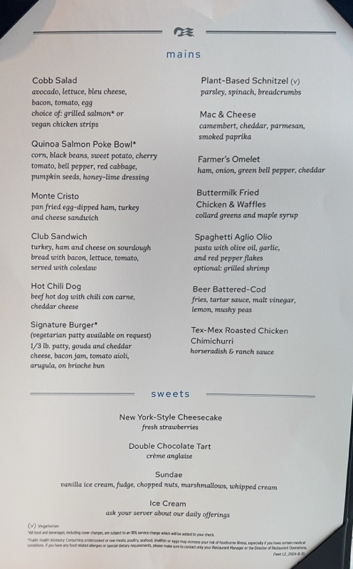 The scheduled comedian didn’t make the ship, so we ended the evening at the Wheelhouse Bar by 10pm. Tomorrow is another port day with an all day tour and we need our sleep.