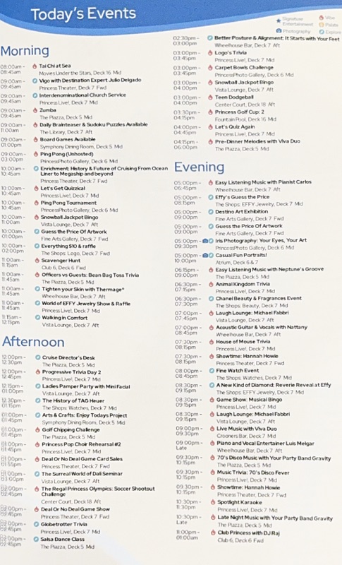 And yes, G is right. There are a thousand different cruises taking place and everyone has a different idea about how to spend their time, but I can safely say that no one else spent theirs taking photos of their feet in public this afternoon on the Regal Princess.