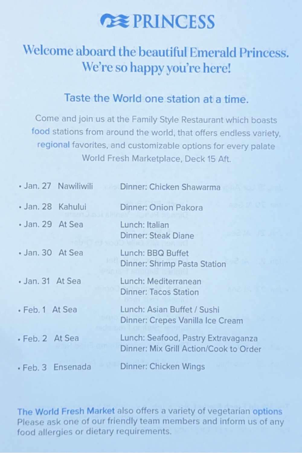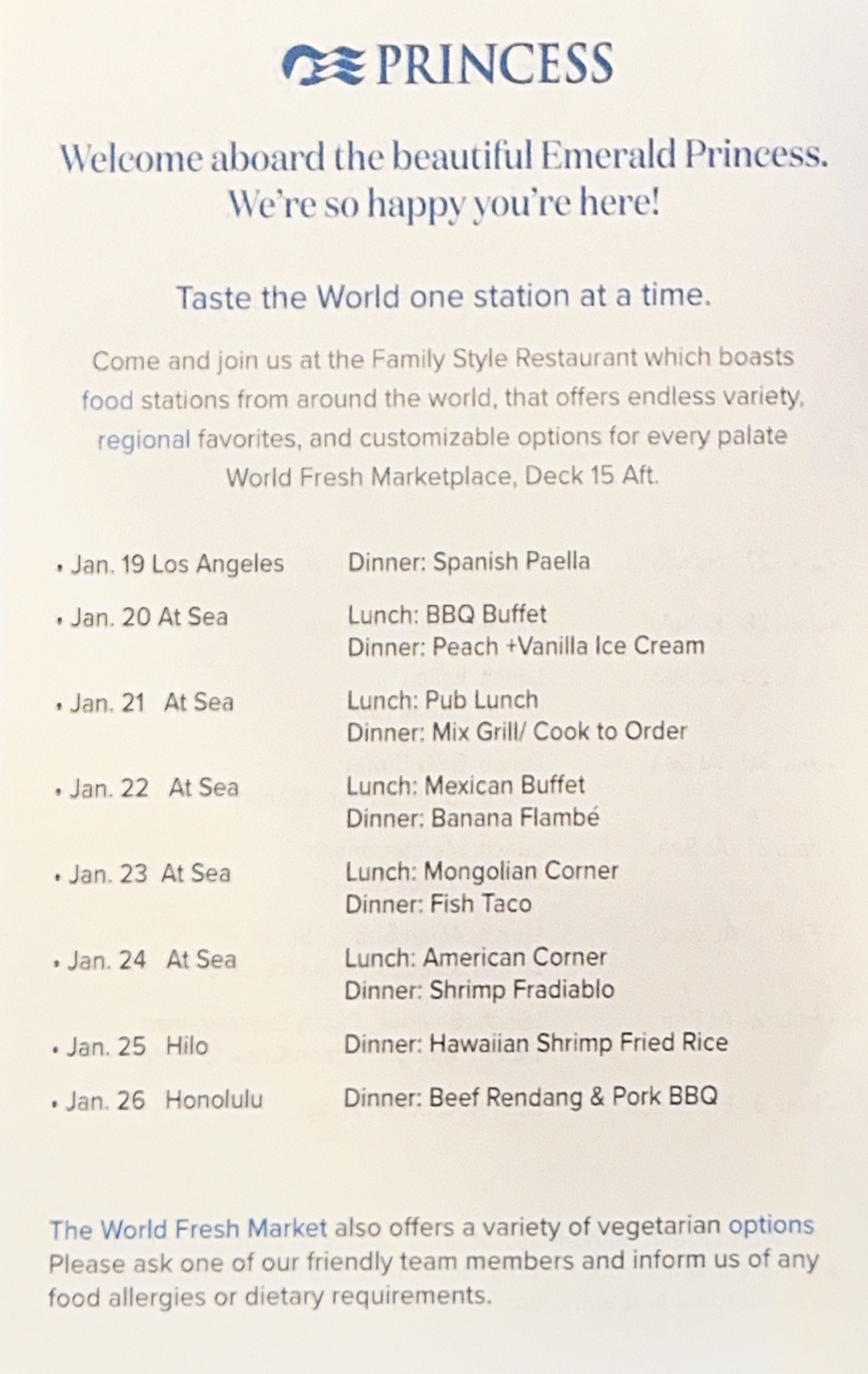 Hawaiian Ambassador Rowena said this morning that Princess wants this cruise to feel like we are in Hawaii from the minute we step on the ship in California and, except for the weather, it certainly does. Hawaiian music in the cabin corridors, lots of Aloha spirit; I’m glad I’m giving Hawaii cruises another chance. How much we enjoy this cruise and the next will definitely impact any plans we make for next winter. So far so good (though I do love those Sea of Cortez cruises too!).