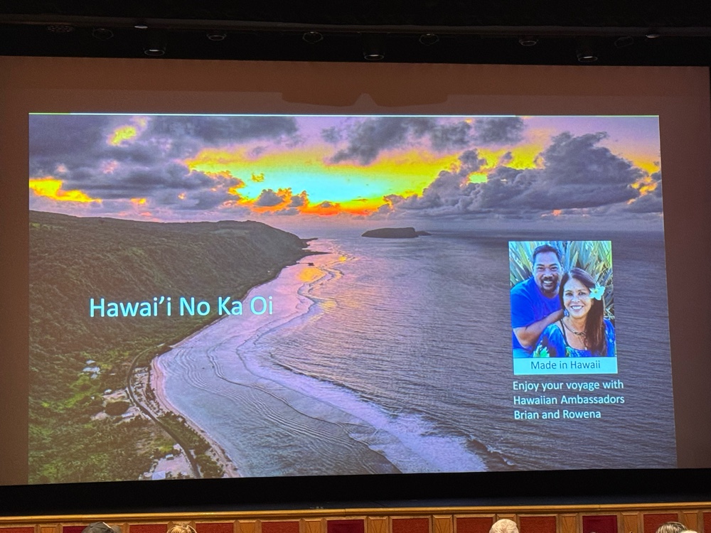 I went from there directly to the Princess Theater for the 10am Princess Theater enrichment lecture with Rowena, who, along with her husband Brian are the Hawaiian ambassadors for this cruise.
