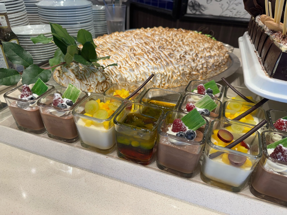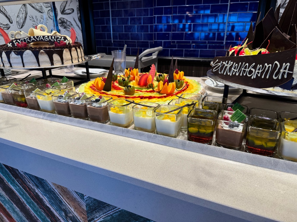 By the time I finished that, the pastry extravaganza was opened in the back area of the buffet. I repeated last cruise’s carrot cake and cheesecake and it’s a good thing I did, because neither tasted even a little bit as good as they did last cruise. In fact, they didn’t taste like…anything. Just sweet. What happened?
