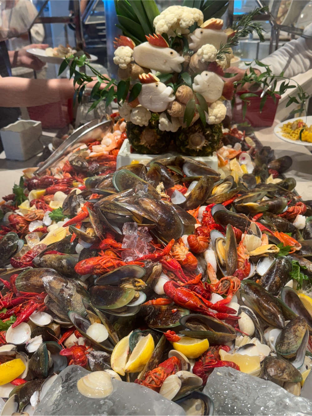 And after I had my fill of seafood, I wandered by the pastry extravaganza in the Cafe Caribe section of the buffet. Years of grazing in pastry extravaganzas have shown me that these desserts generally look a lot better than they taste. Not so on the Emerald Princess! I can personally attest to the deliciousness of both the carrot cake and the cheesecake. And thank God I don’t have to put myself through the rigors of that taste test on the next three cruises. 😉
