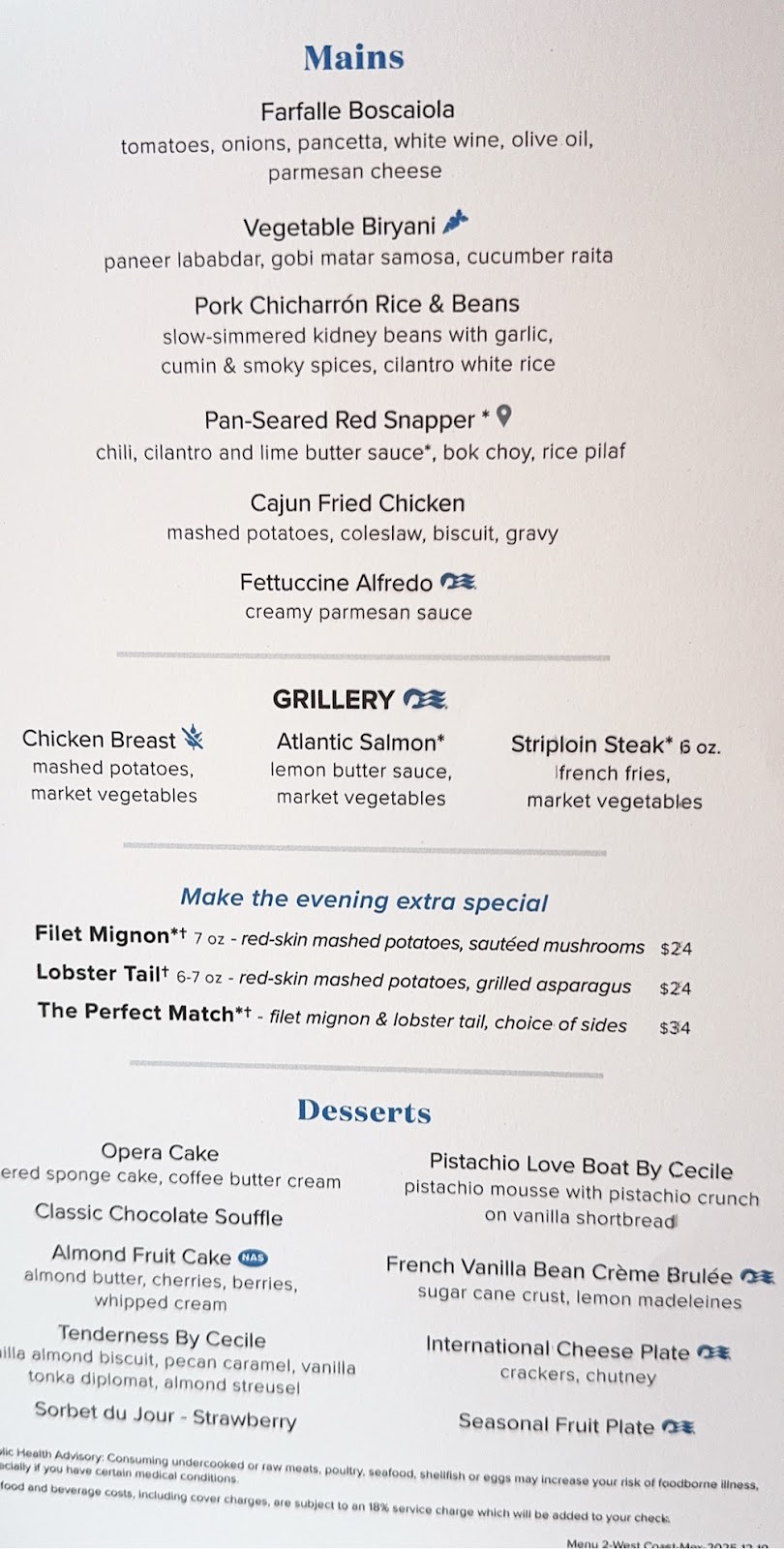 We then headed back over on a tender to have $4 beers on the balcony at Wizzies, right on the tender pier, and returned to the ship just in time to get cleaned up for the Elite Lounge and dinner.