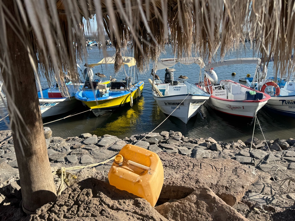 Other entertainment included watching small boats used for excursions being taken out of the water. Some really nice vehicles (Suburbans, 4x4 pickups, all with California license plates) would back their trailers down the boat ramp, hook up their boat and pull away. Then there was a vintage Jeep SUV (1980s?) whose front tires were actually lifting up as it tried to get started up the ramp. We were mesmerized.