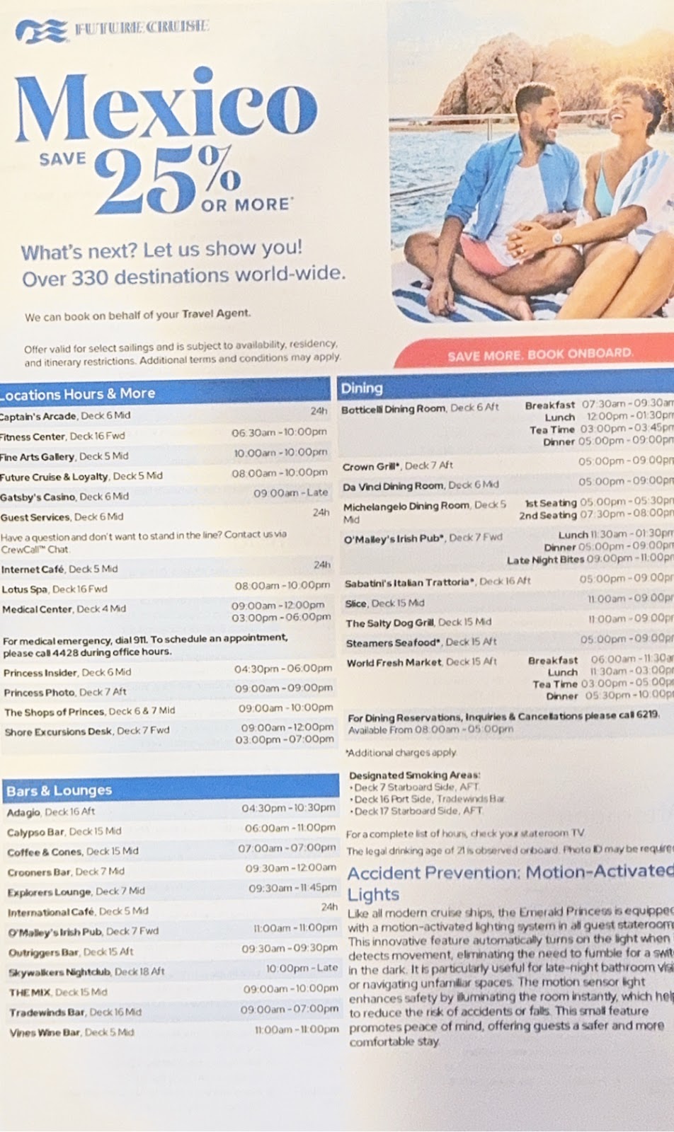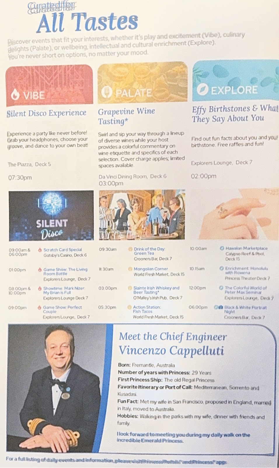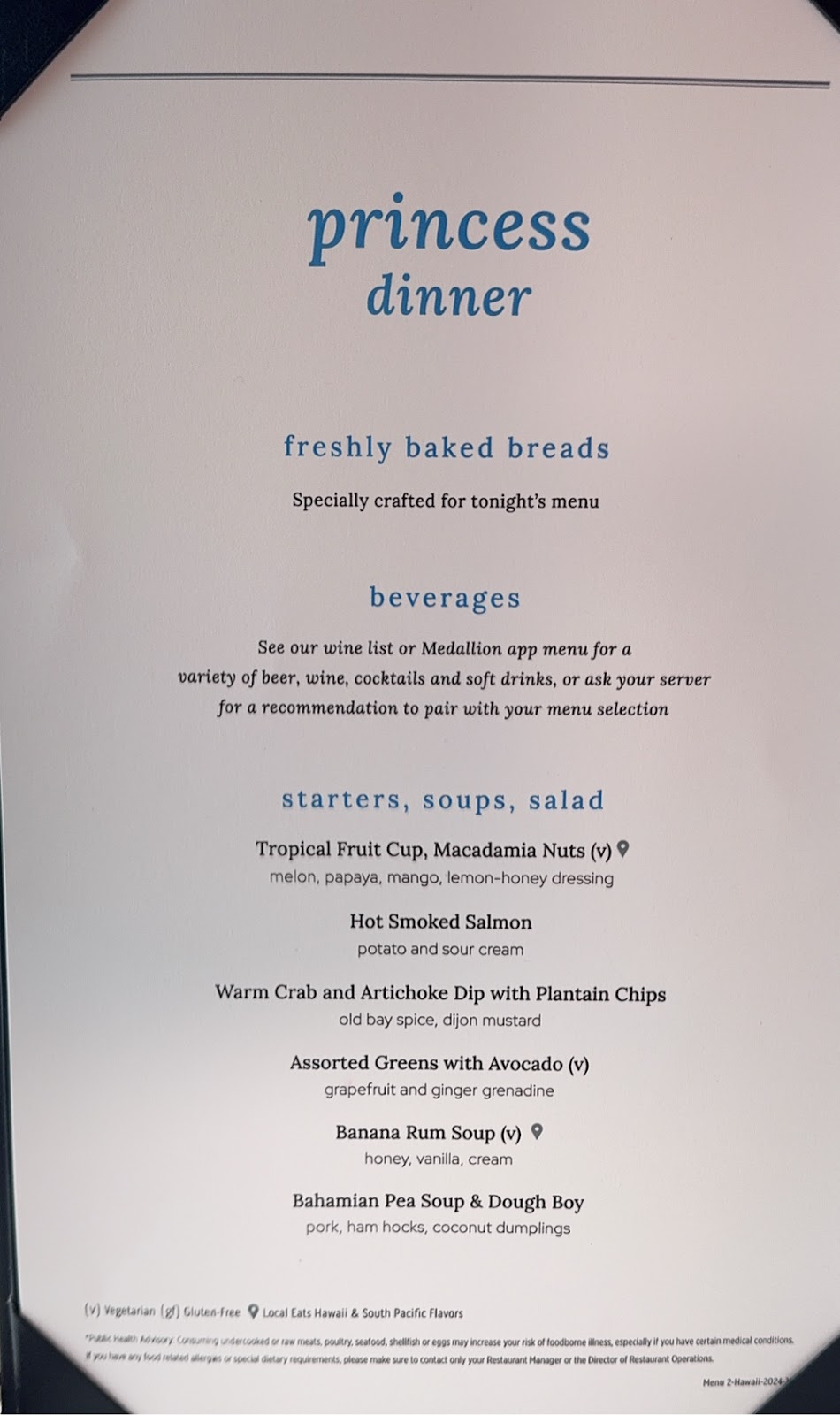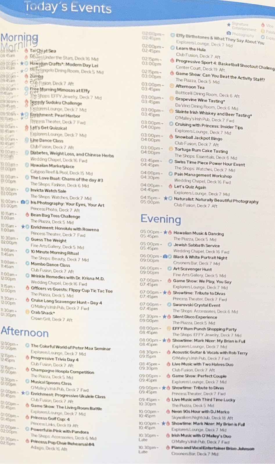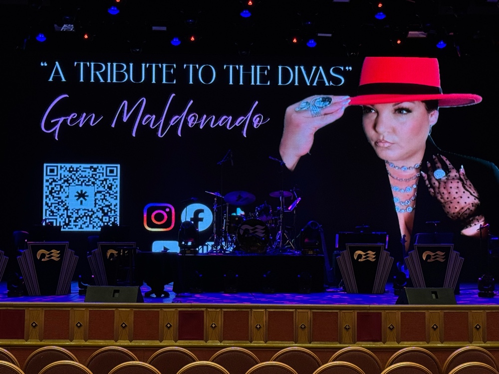 Tonight’s performance by vocalist Gen Muldonado was exceptional. She sang the music of the divas, and this girl could sing. Patsy Cline, Aretha, Tina Turner…every song was a hit. We enjoyed it so much that we returned for the 9pm show. She said she’s heading to Fort Lauderdale and Caribbean Princess when we get to Hilo, so watch for her there, and then returning to the Emerald Princess, so maybe we’ll see her again next cruise.