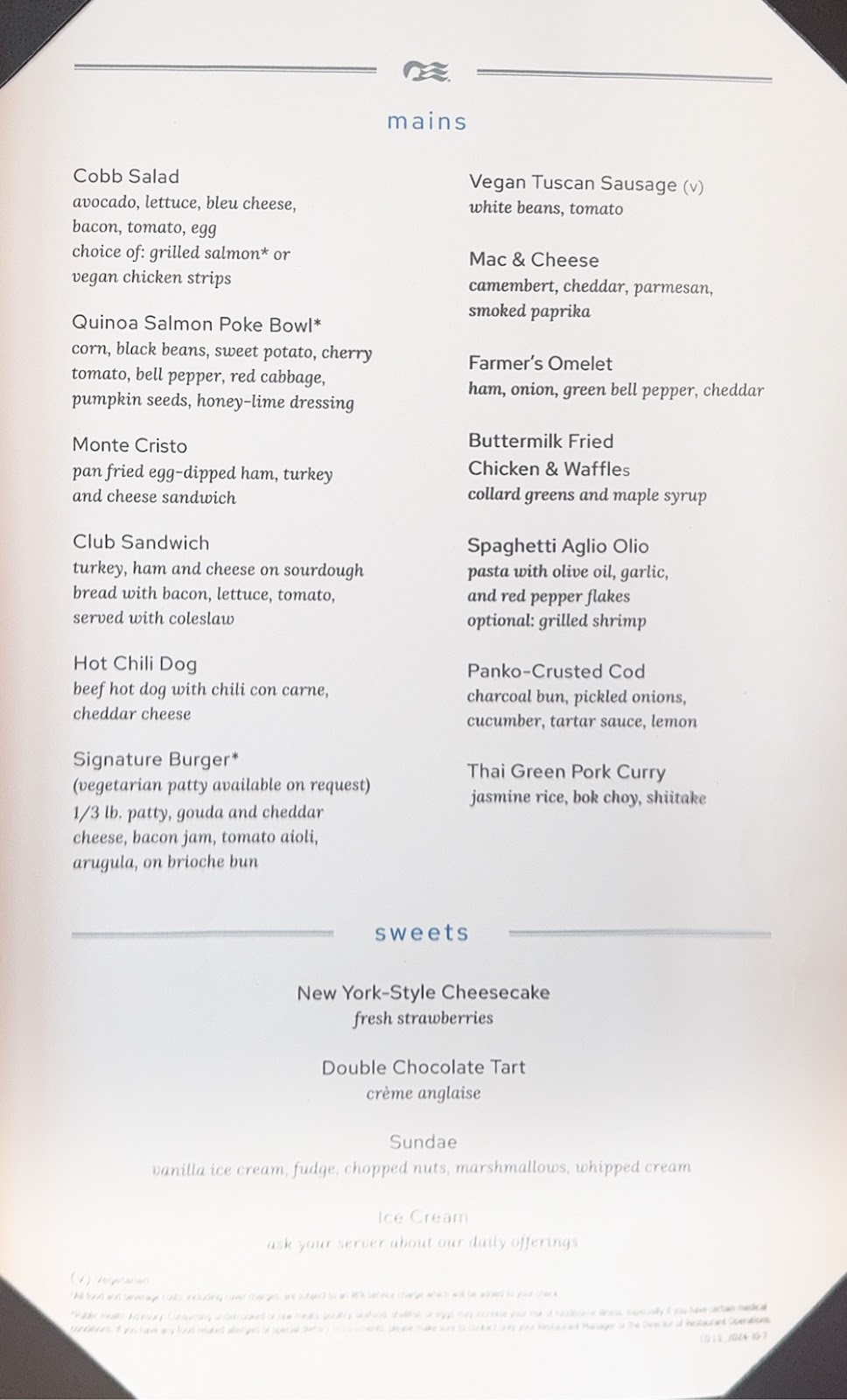 Some people were jokingly calling it an apology party. Apparently the immigration issue that I mentioned a few days ago that I kind skated through caused a lot of trouble for the guests behind me and some of them had to wait in the terminal for quite a while (one guest was mistakenly instructed to leave the terminal and wait outside!), so while I was sitting on the empty Terrace Deck enjoying another cup of coffee before I went to Embarkation Day lunch, several others were having a much tougher time of things.