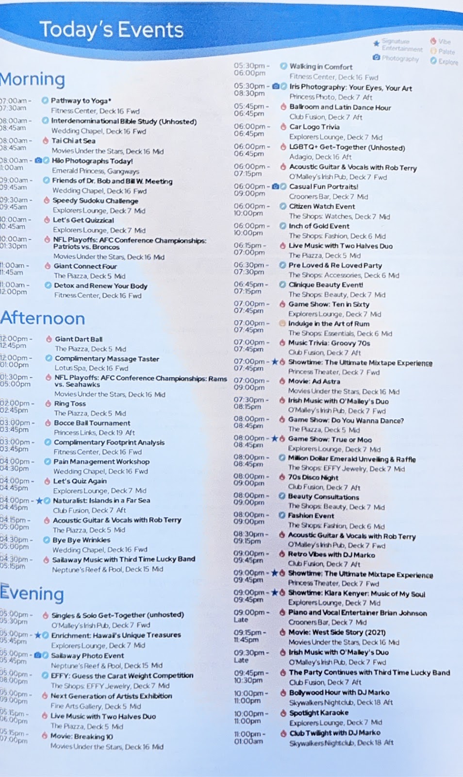 And then it was time to claim chairs and settle in for today’s AFC championship game. Sure, we were watching it on a cruise ship in Hawaii and not in the brutal cold and snow at home, and the outcome was certainly not unexpected, but that was as soul crushing a defeat as I’ve experienced in recent years. Soul crushing.