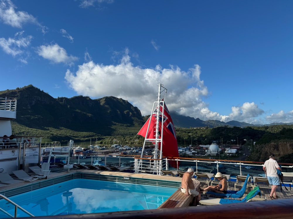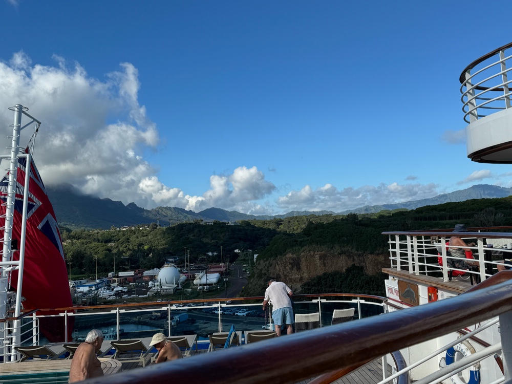 Captain McBain said, in his welcome back on board announcement this afternoon that tomorrow’s weather in Maui should be equally beautiful. We are definitely on a roll here, and the weather has certainly helped make this one of our favorite cruises in years. And we still have one more to look forward to!