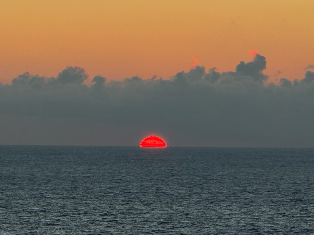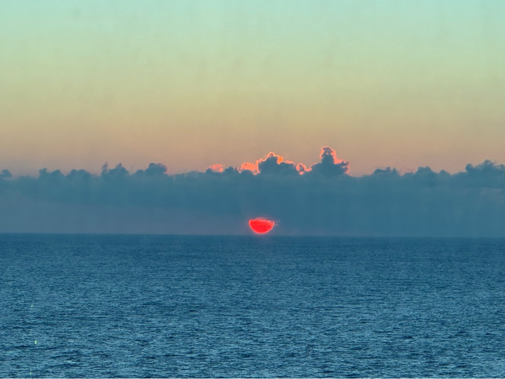 Sunset occurred while we were in Skywalkers and was so beautiful that, after taking photos through the glass, I ran down the stairs to Deck 17 to photograph the end of it.