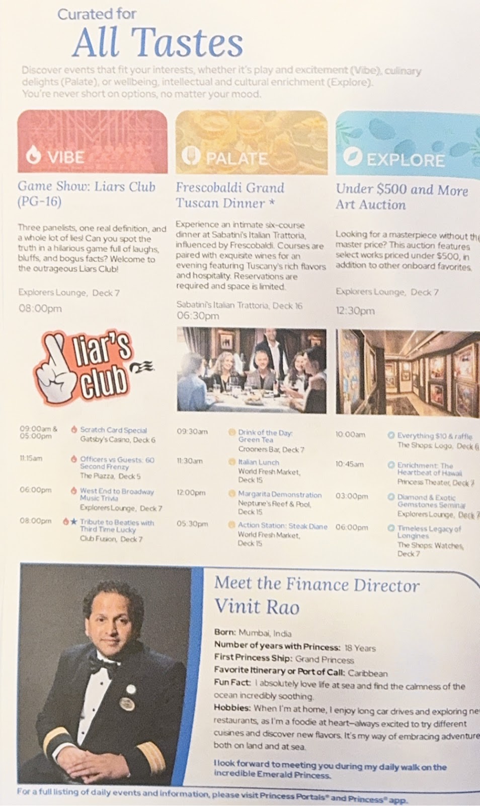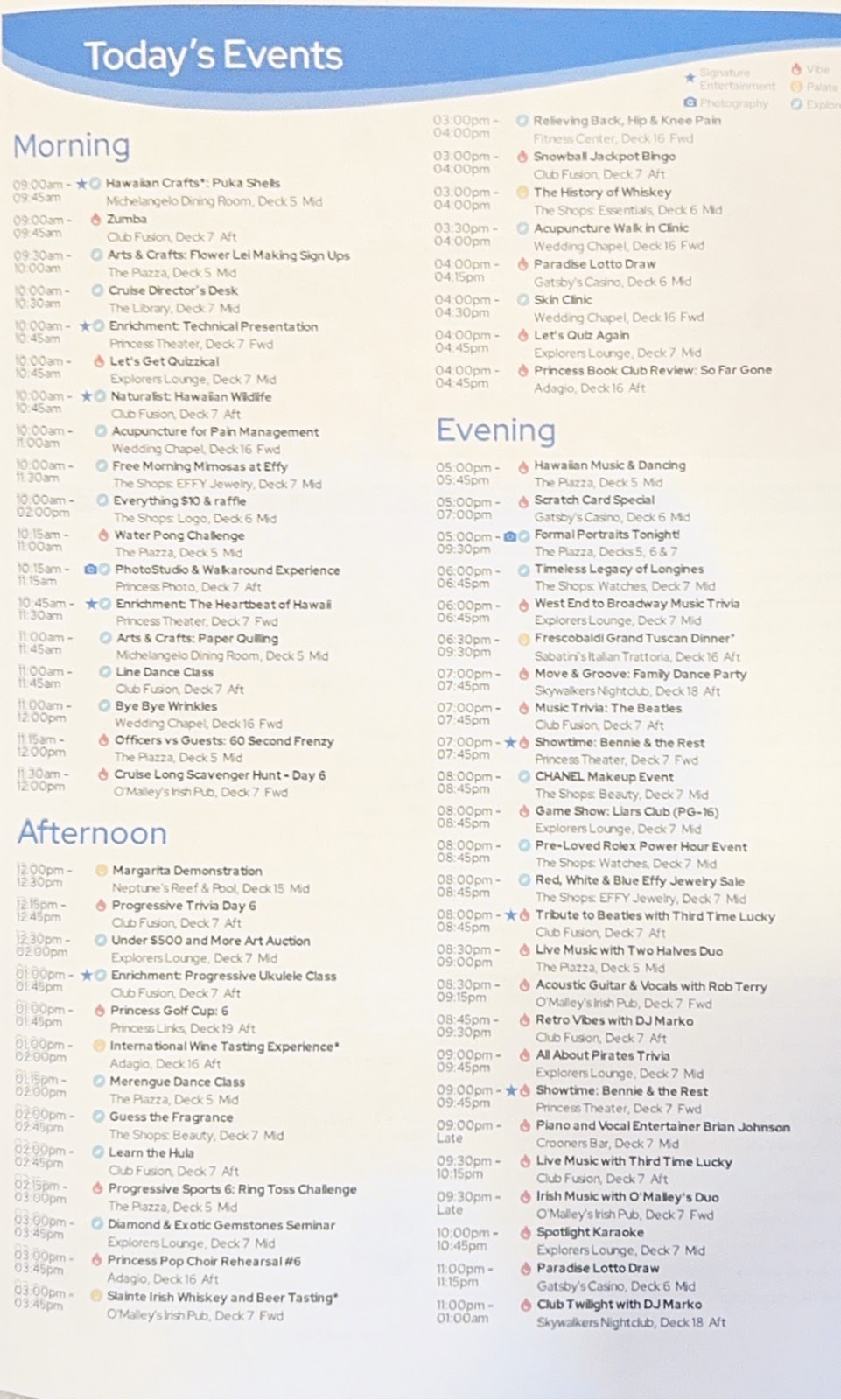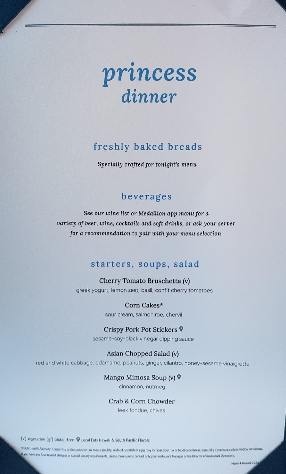 The evening was filled with the Elite Lounge (we go, not because we’re even a little hungry, but just to see chef Santiago who puts his heart and soul into the food taste and display) followed by dinner in the Michelangelo Dining Room (I had the Asian salad made dinner-sized and topped with chicken breast and i wish I could have that every night at this point) and then a show in the Princess Theater.