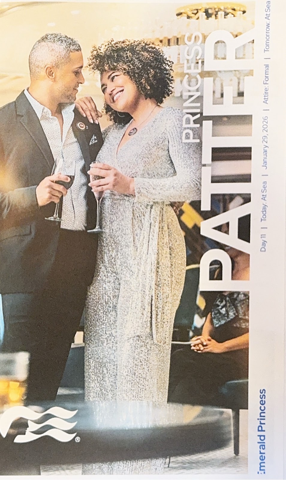 This was definitely a lazy day for us. We slept until 9am (with that one hour ahead thing), had breakfast on the Terrace Deck (two bird seed cookies for me), then used the pool and hot tub and generally chilled (I listened to an Audible book) until it was time to go to our ukulele lesson. I think we’ve forgotten more than we ever knew, but it still so much fun! After that, we rested in the cabin until we got cleaned up for our eleventy-seventh formal night of the winter.