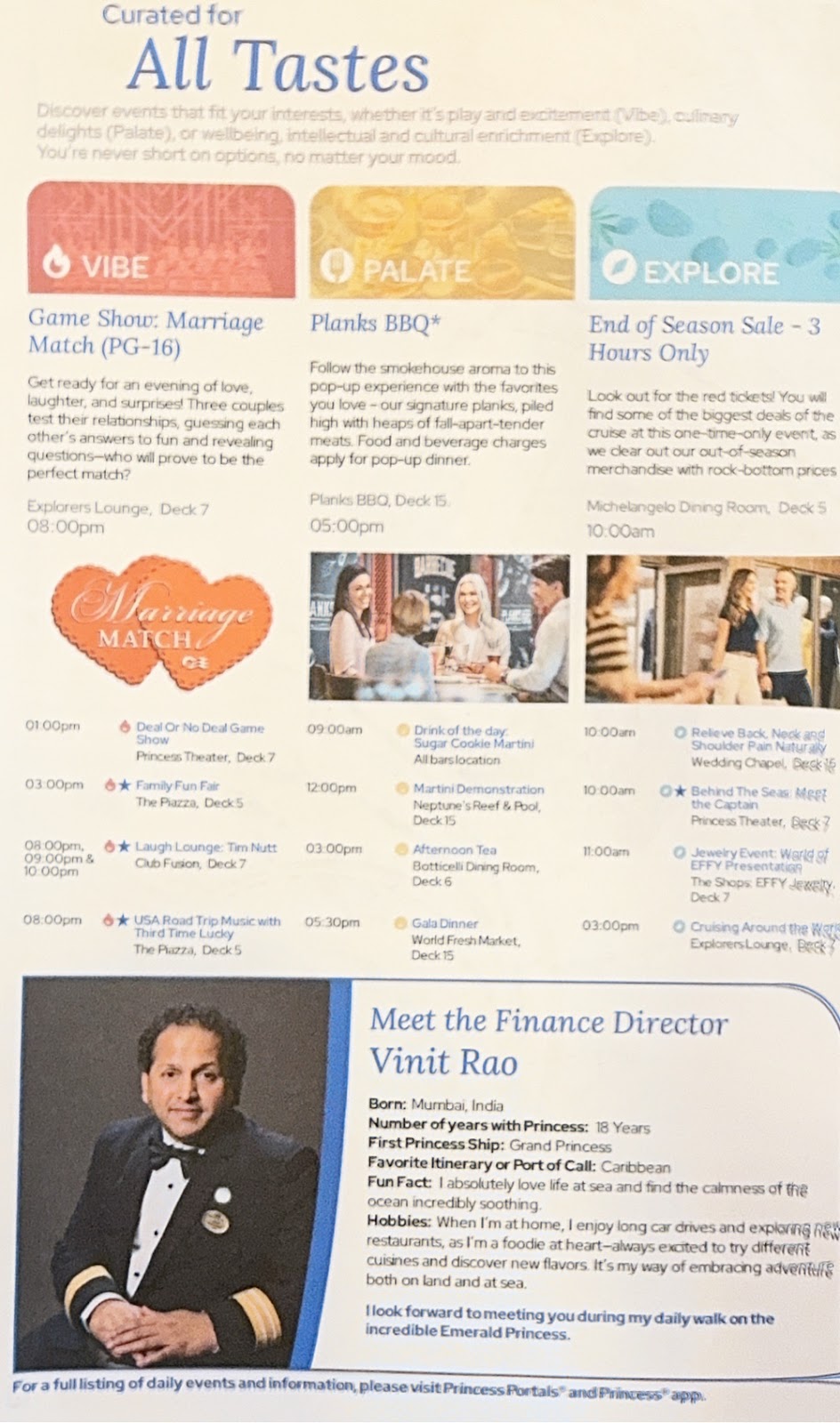 We caught the tail end of the Captain’s Farewell Cocktail party where many crew members came on to the Piazza floor while the party band played Simply the Best, and then went to the Princess Theater to see Erik Bryan in Let Me Be Frank, a mystical toast to Sinatra and the Rat Pack. Yeah, not exactly my taste but you gotta do what you gotta do sometimes. Actually, he was much, MUCH better than Sinatra which helped.