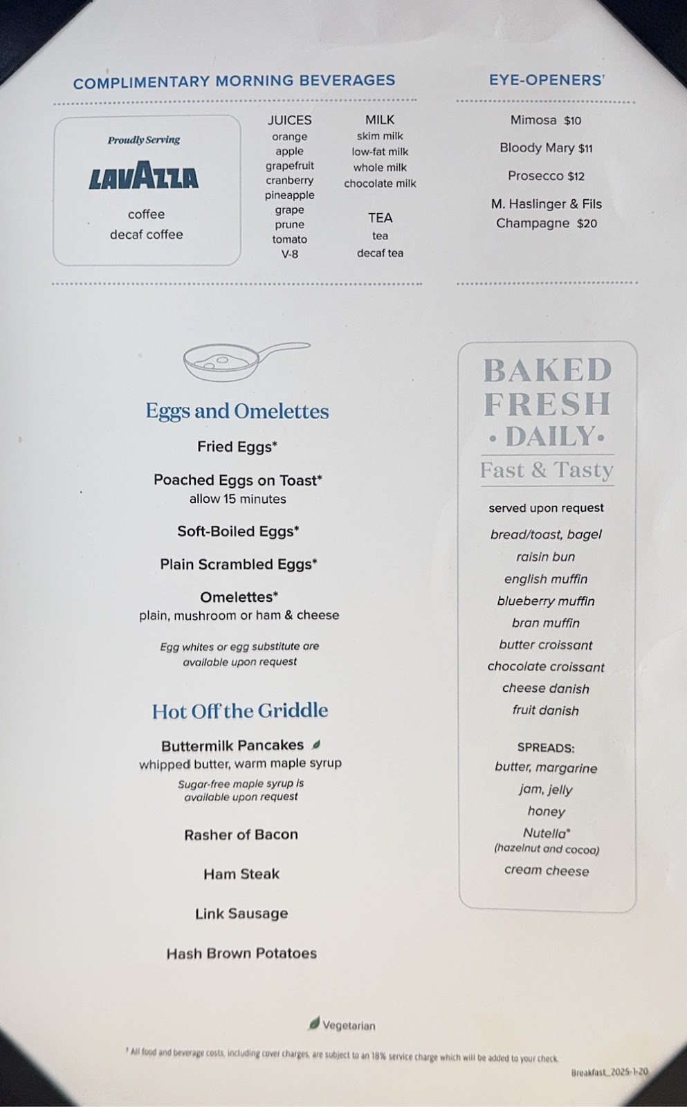 We were awake at a respectable hour this morning, and went to breakfast in the Botticelli Dining Room where our waiter was darling Xolani from Zimbabwe. Like every other waiter we’ve met from Zimbabwe, he was so sweet to us. We had no right to even be eating breakfast today (MTG luncheon day), but that didn’t stop us. I had just enough oatmeal to convince my morning vitamins to stay down and happy in my stomach.