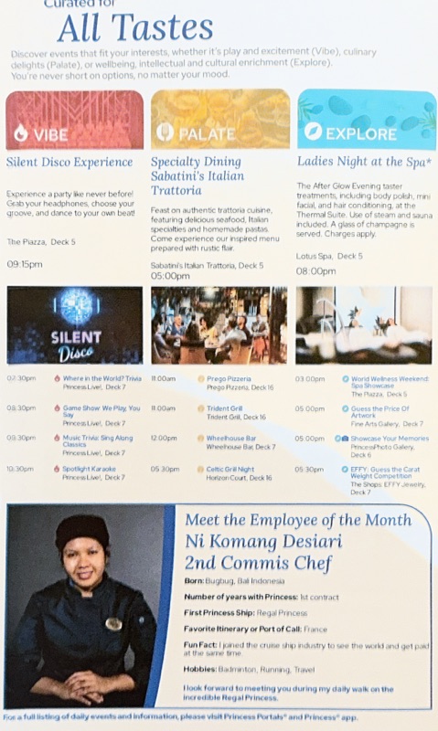 We couldn’t rely on those normal telltale signs that our cruise had come to an end, such as the thrusters spinning our ship into place at its berth, to act as our alarm this morning. Instead we set alarms on both phones and my iPad to make sure we didn’t miss our final Sabatini’s breakfast.