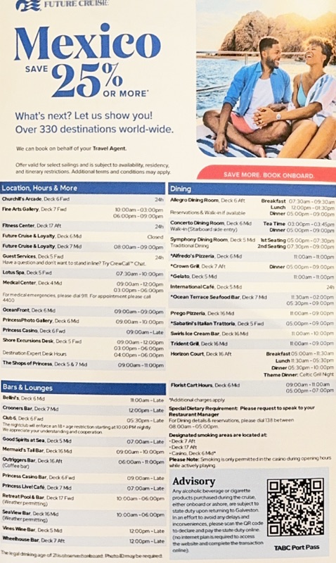 G and I were both extremely fortunate that we didn’t face any of the major flight delays that have been popping up across the country. It was also nice, while in the USO, to overhear a Southwest pilot reassure someone there that these winds weren’t going to be an issue. Not that I was worried…but it was nice all the same. They were gusty! In fact, about the time the Regal Princess docked last night, a cargo ship hit a pier in Galveston and that’s now a whole thing, with an oil spill in the harbor that has it partially closed to ship traffic until it is cleaned up. The first Regal Princess cruise out of Galveston this season is impacted. Sound familiar? Guess we were fortunate to safely get into port at all!