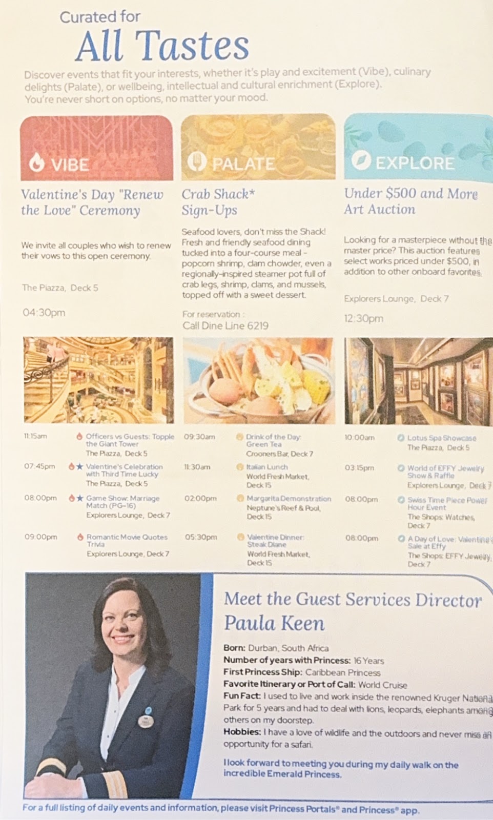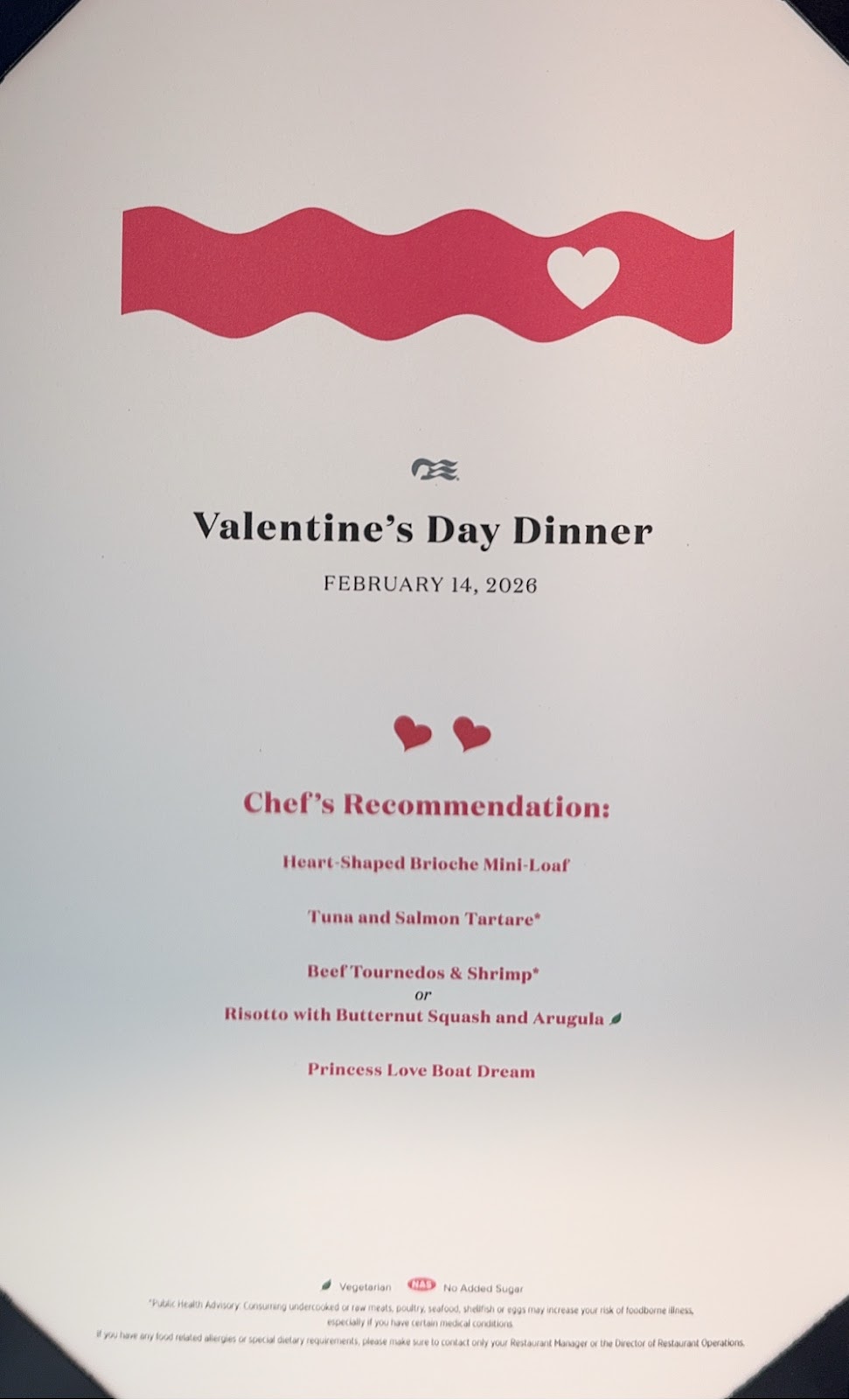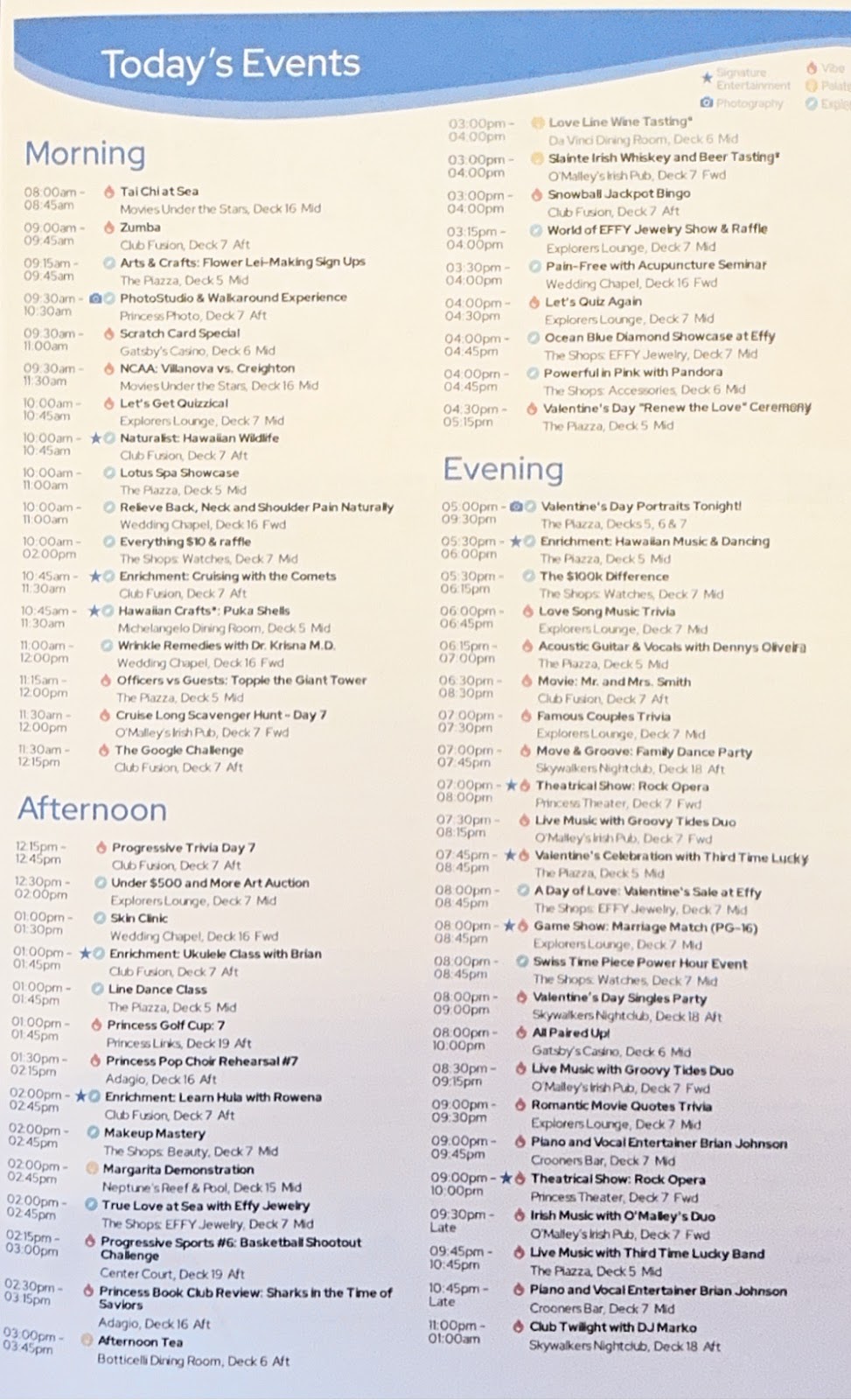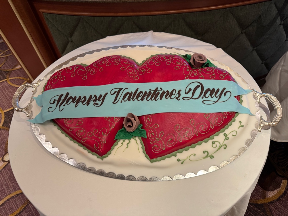 They all talked about the three special events this cruise (Super Bowl, Valentine’s Day and Mardi Gras) and how they’ve planned things to make each event special, like the special desserts and drinks they featured yesterday. It’s been really nice.