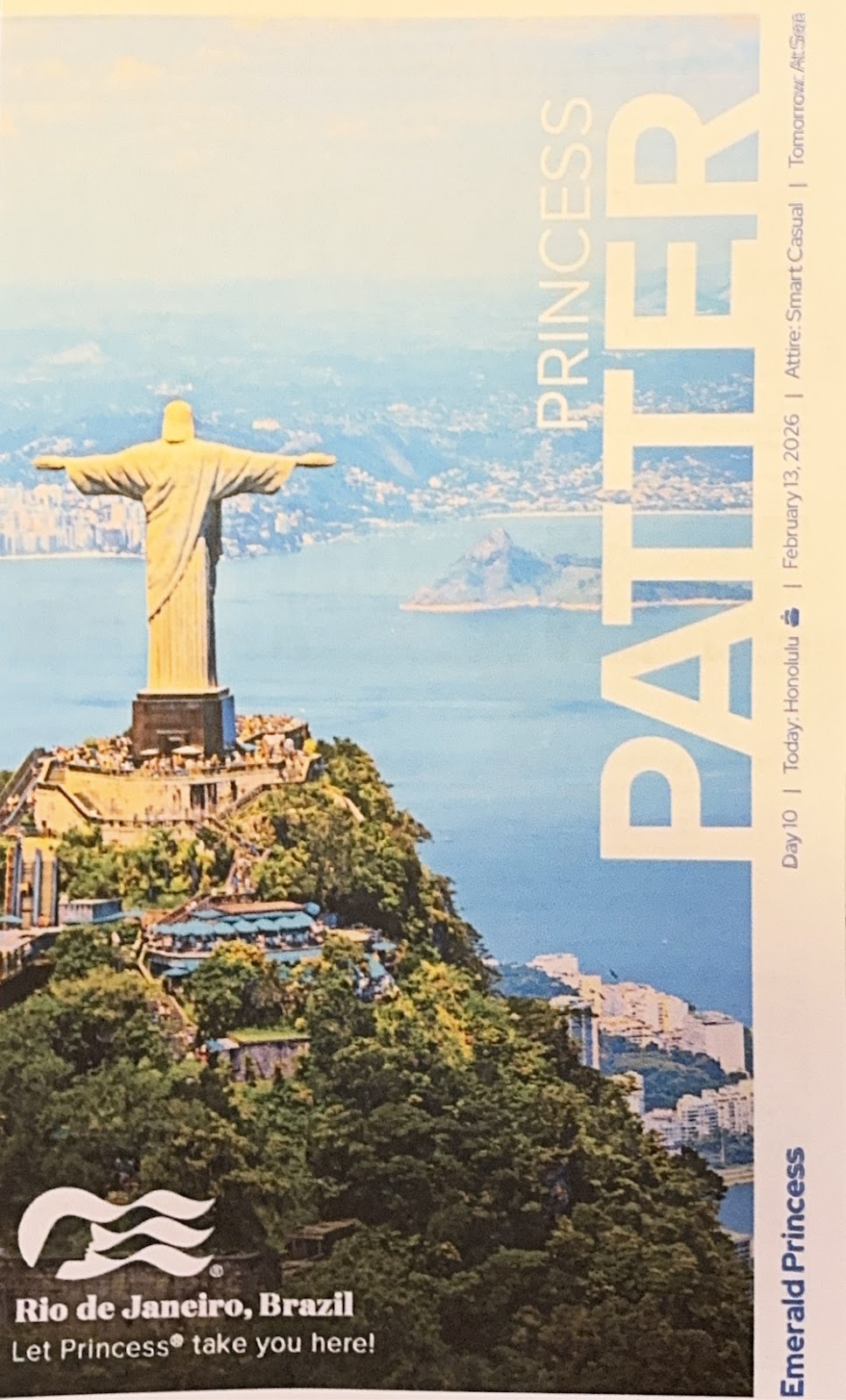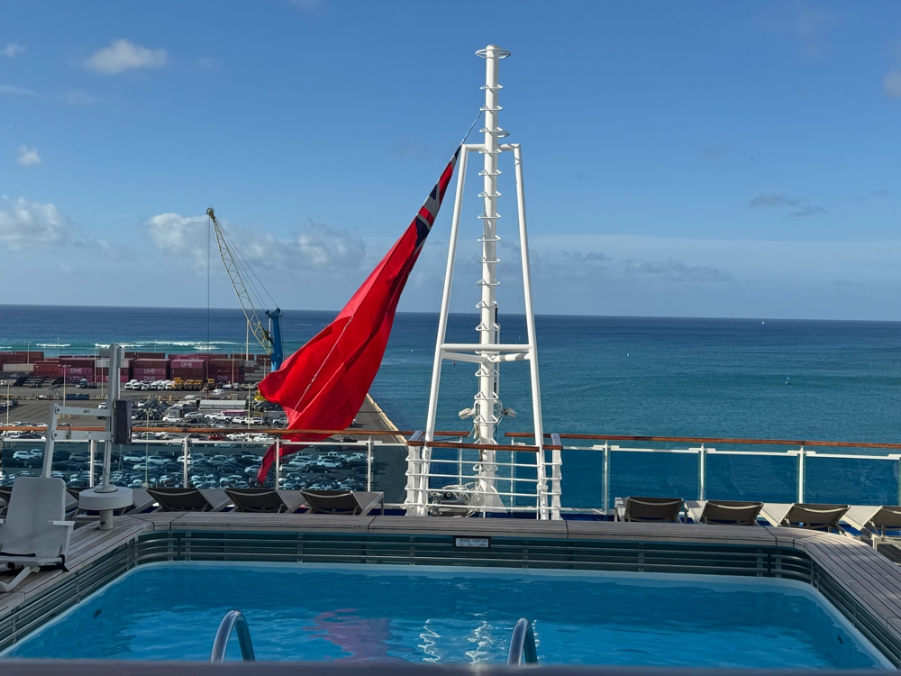 I was up fairly early today. I think the ship’s movement was on my mind; I was having a dream where the Emerald Princess was encountering turbulence as it sailed across the sky, and it ran into a bell tower in Italy and broke it off. Really. Yeah, I think it’s starting to get to me.