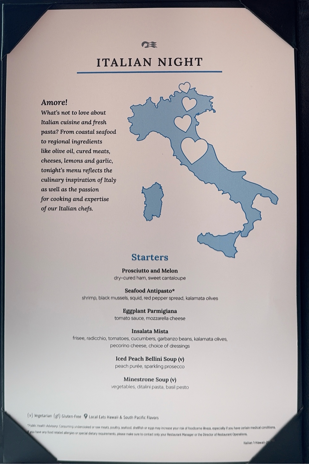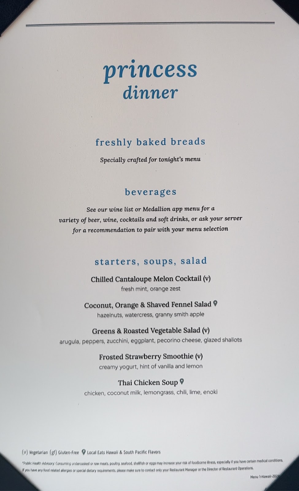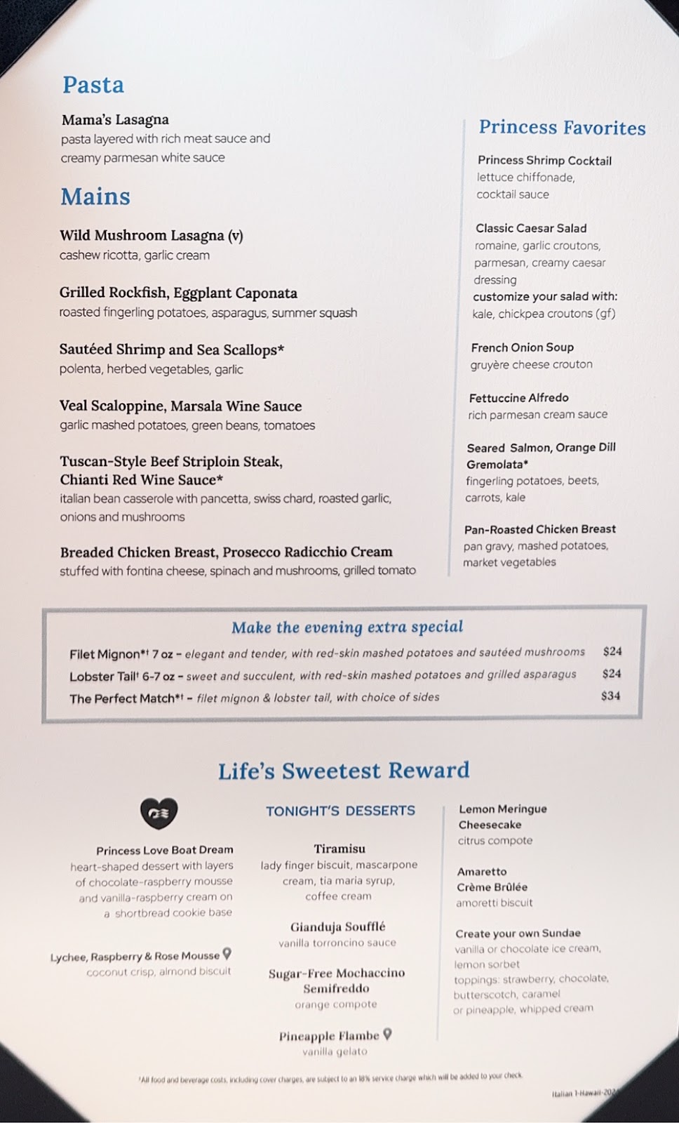 We took a peek at the dessert menu before we went to the show to determine if we wanted to return to the dining room for coffee and dessert, but we really weren’t hungry enough to do that, and so we ended our evening early, at 8pm.