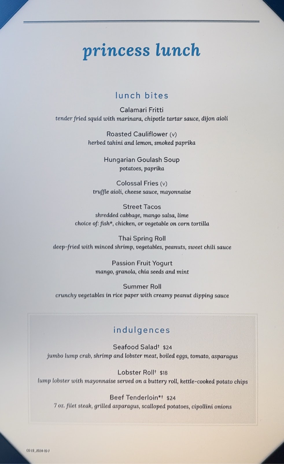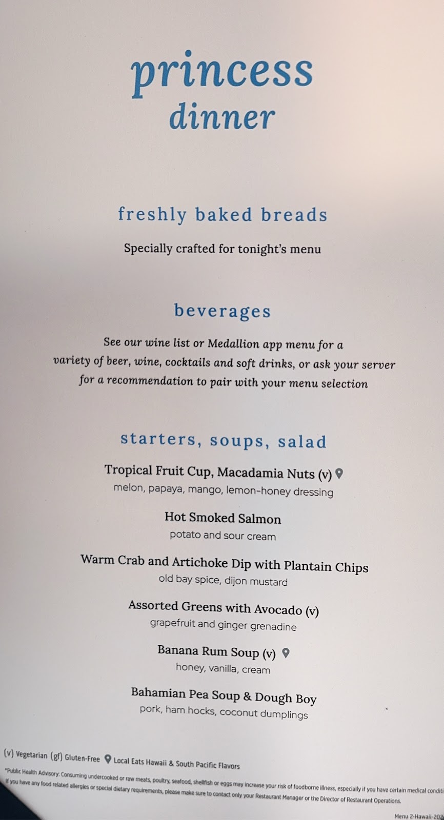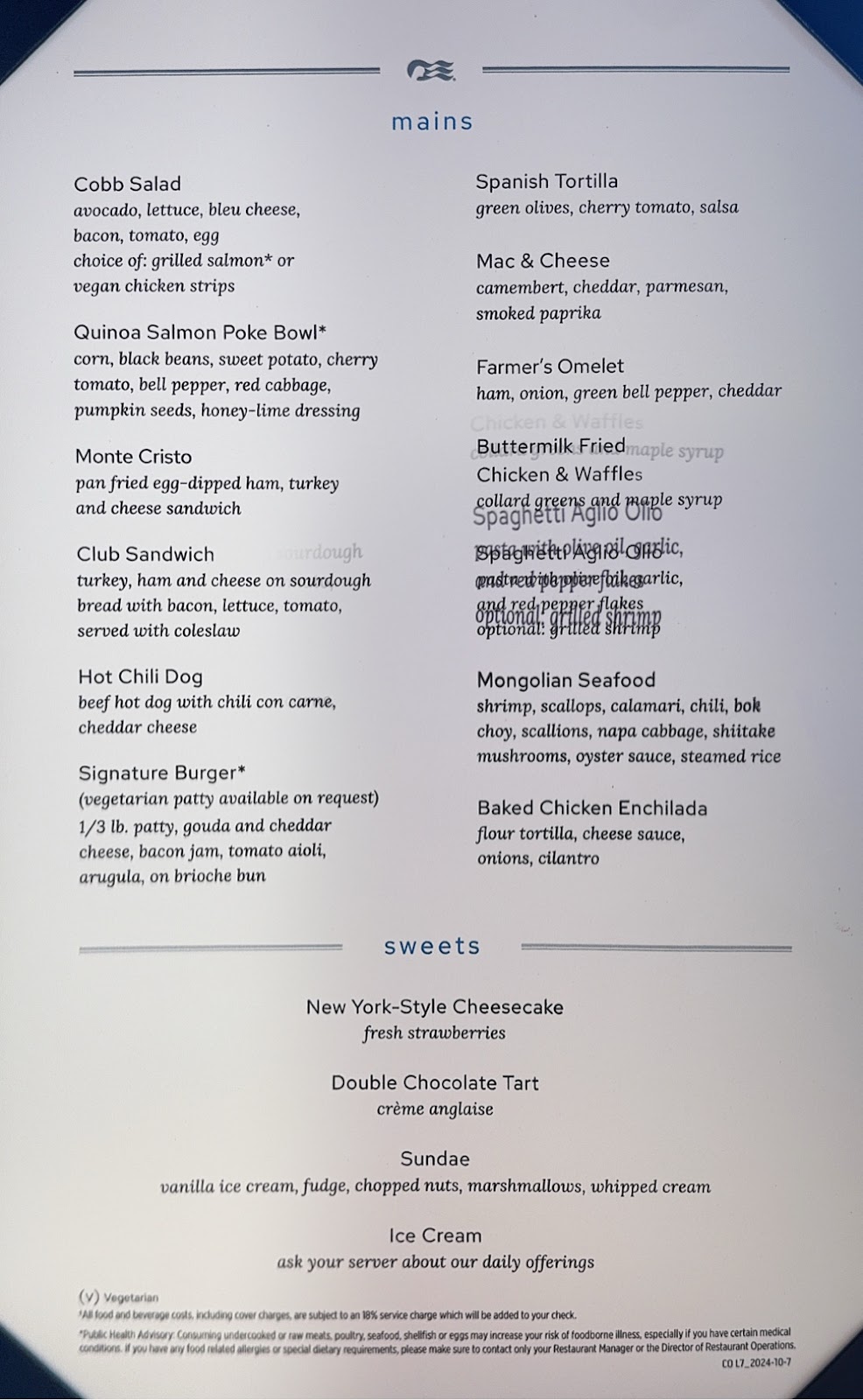 We took a peek at the dessert menu before we went to the show to determine if we wanted to return to the dining room for coffee and dessert, but we really weren’t hungry enough to do that, and so we ended our evening early, at 8pm.