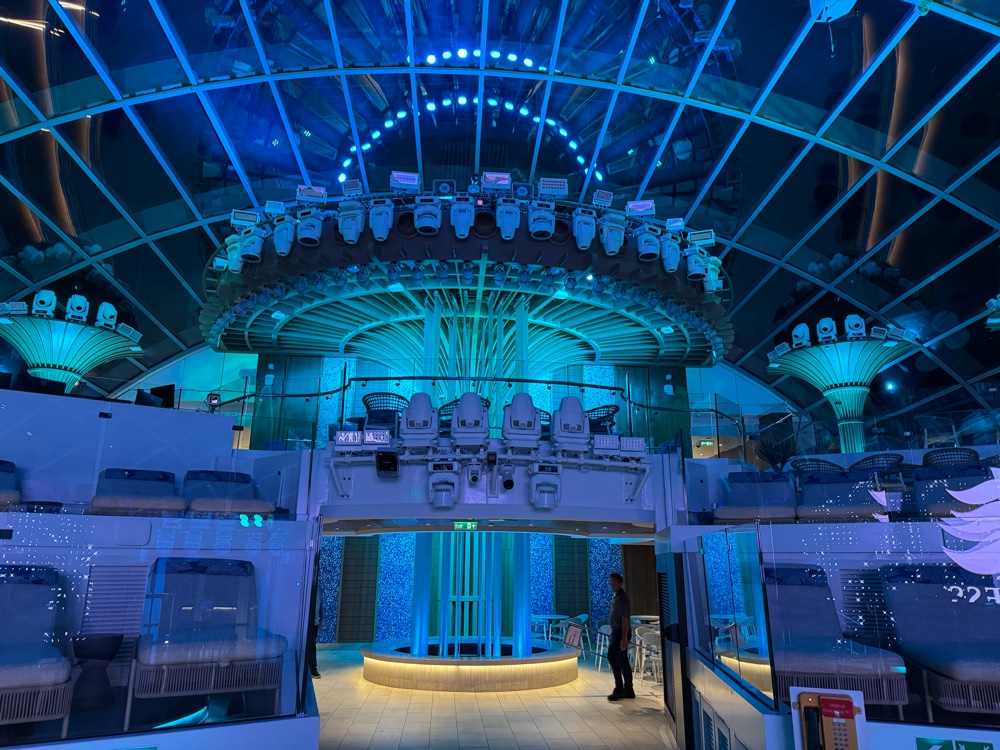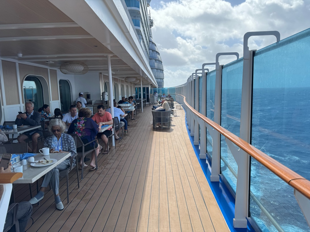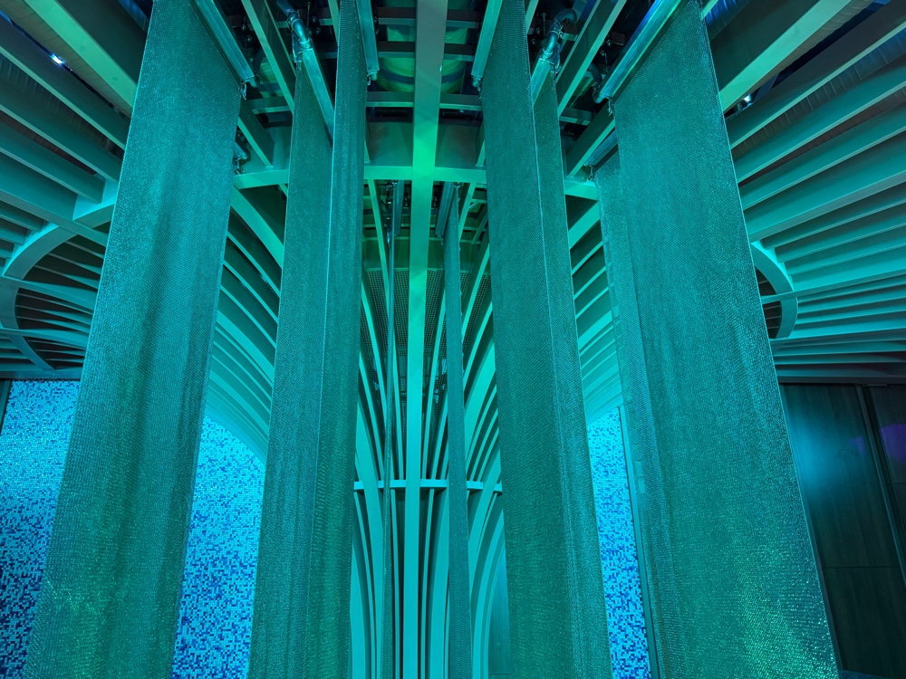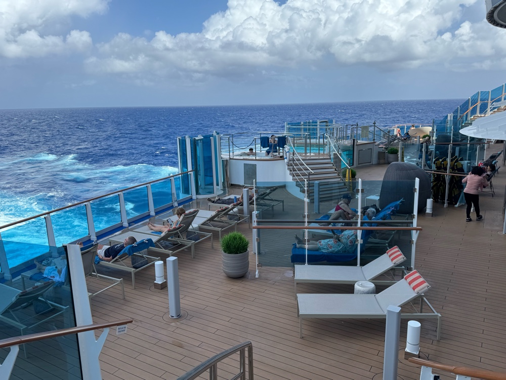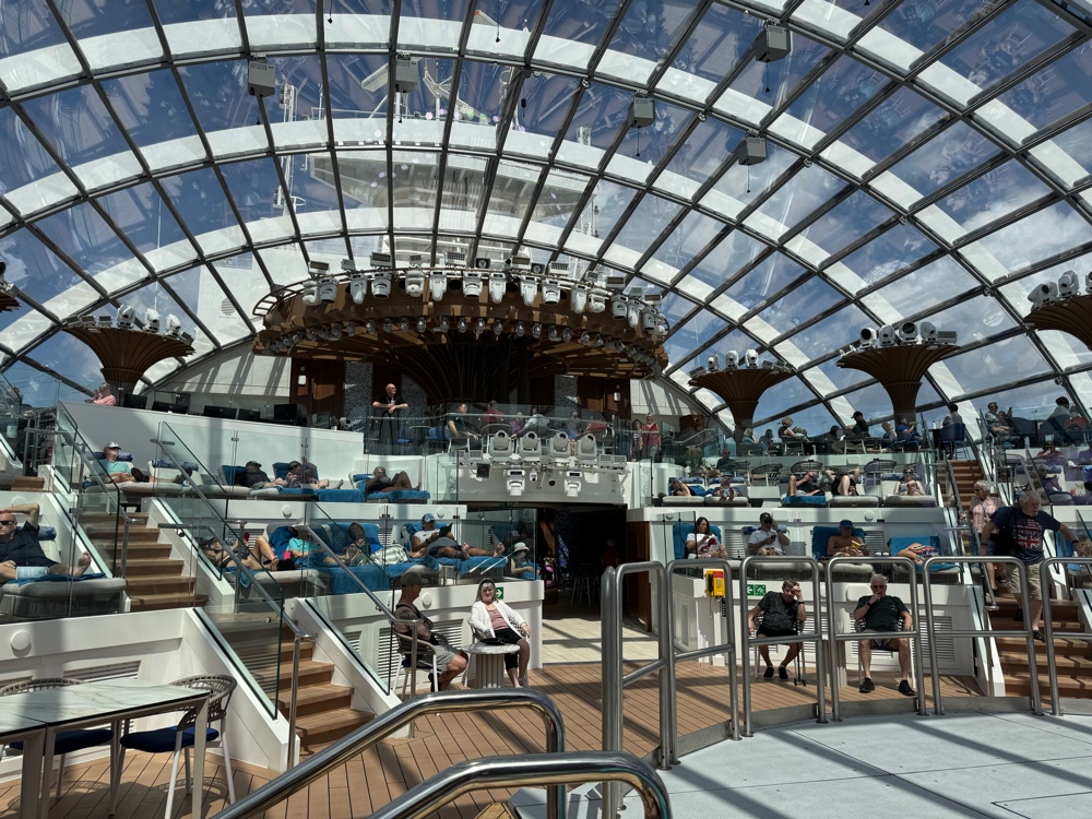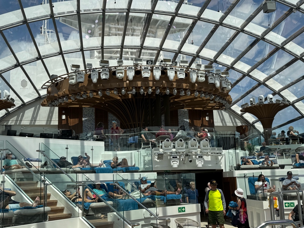 We don’t have friends in high places, but apparently we have friends who have friends in high places, and, for this cruise at least, our luck changed. We will be dining in the Sanctuary Restaurant for all our meals.