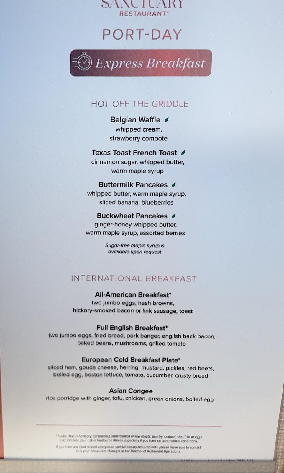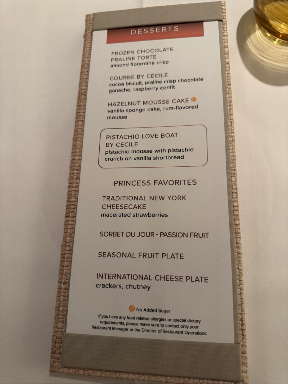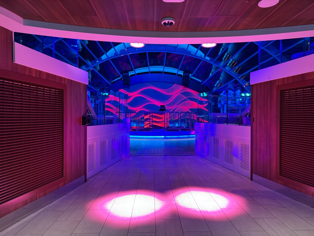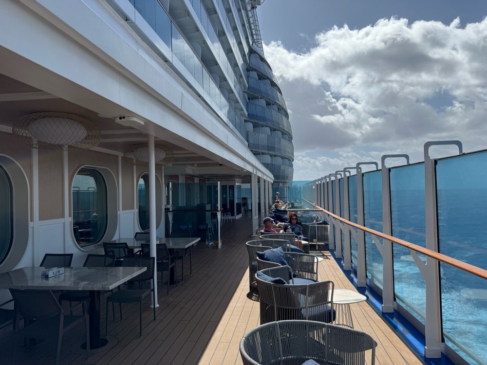 We don’t have friends in high places, but apparently we have friends who have friends in high places, and, for this cruise at least, our luck changed. We will be dining in the Sanctuary Restaurant for all our meals.