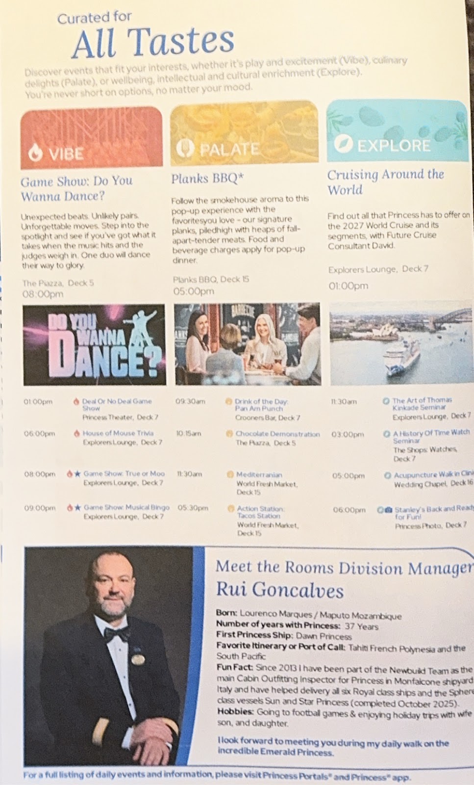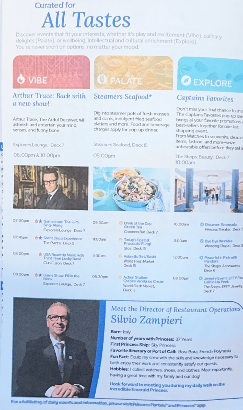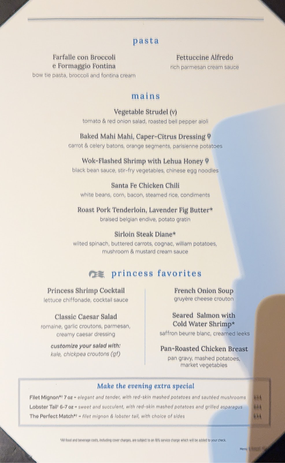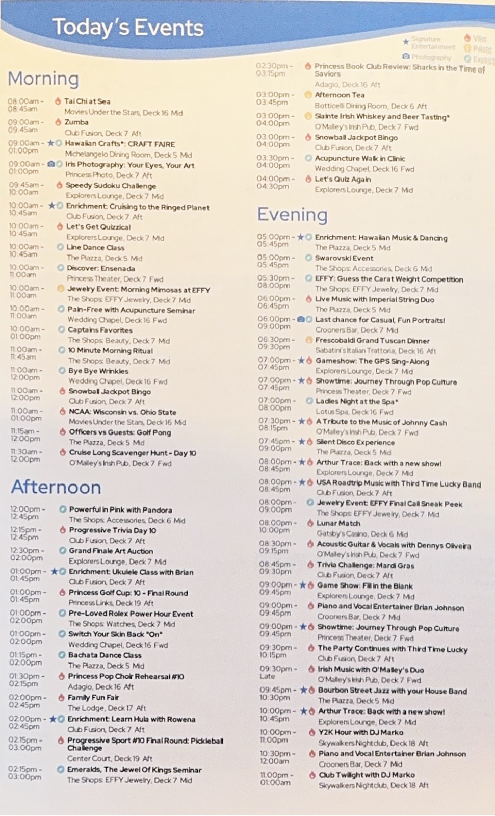 Tonight’s Princess Theater entertainment was Jeff Tracta, an impressionist-singer taking us on a journey through pop culture. Ahead of the show, I believed we had seen him on the Royal Princess in December and liked him, but couldn’t figure out why a search of my blog didn’t turn up his name. And then I remembered…I didn’t blog from the Royal Princess! Duh. Sure enough, he was the same guy. His show is fantastic, and we enjoyed it just as much this time around.