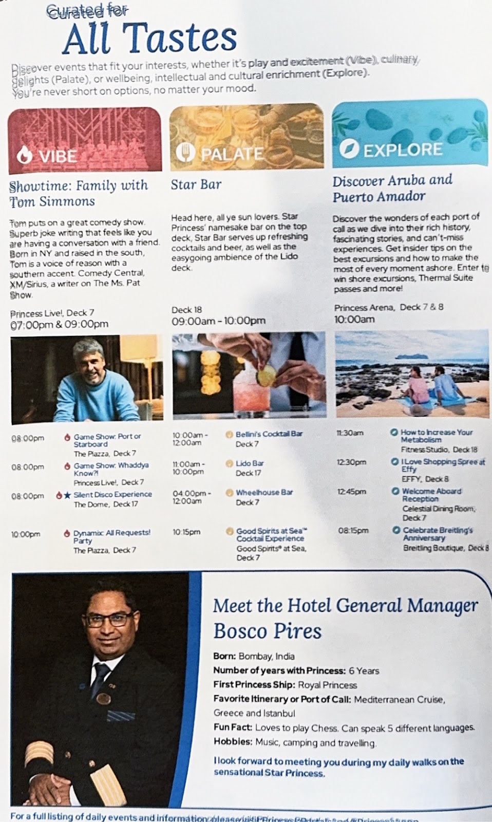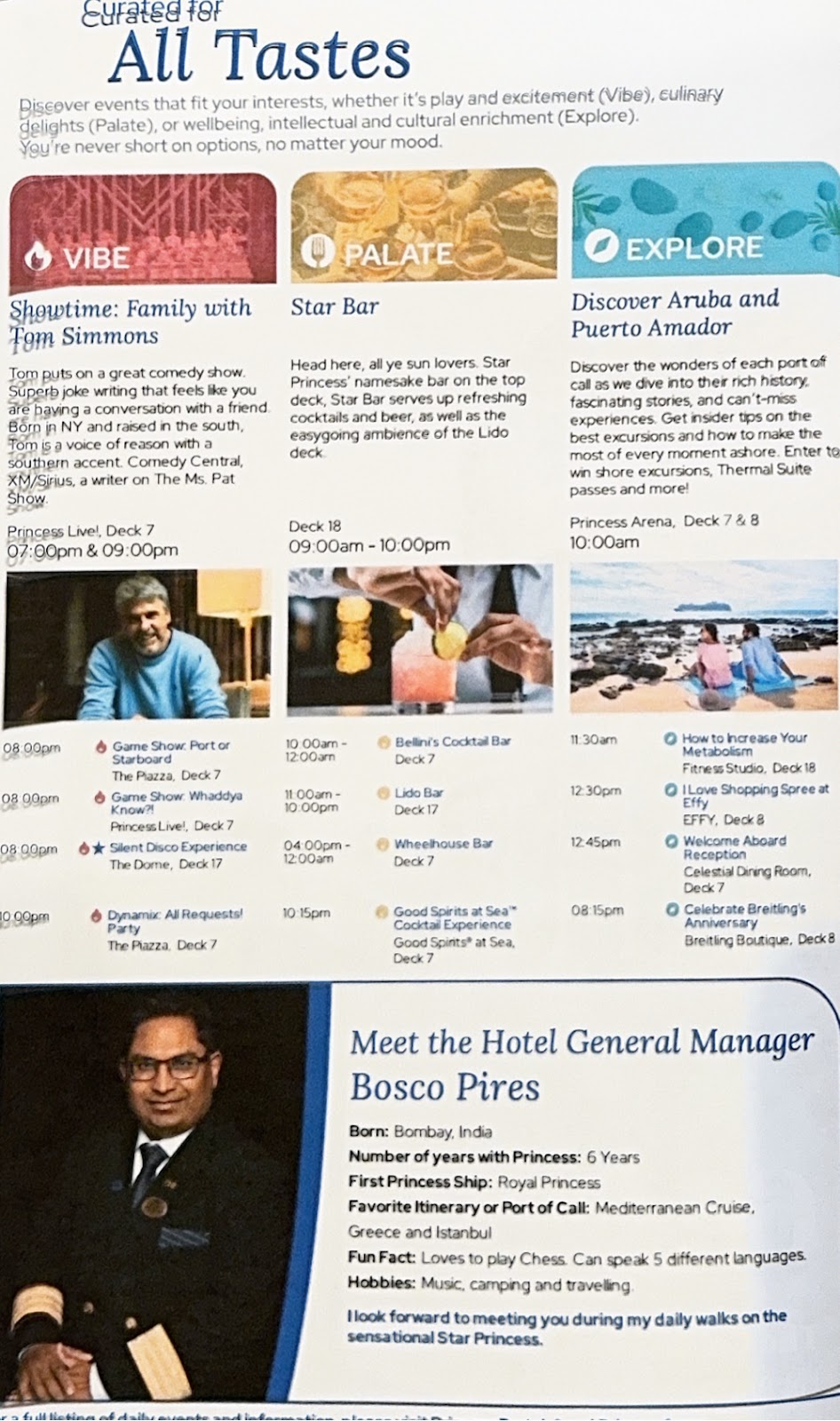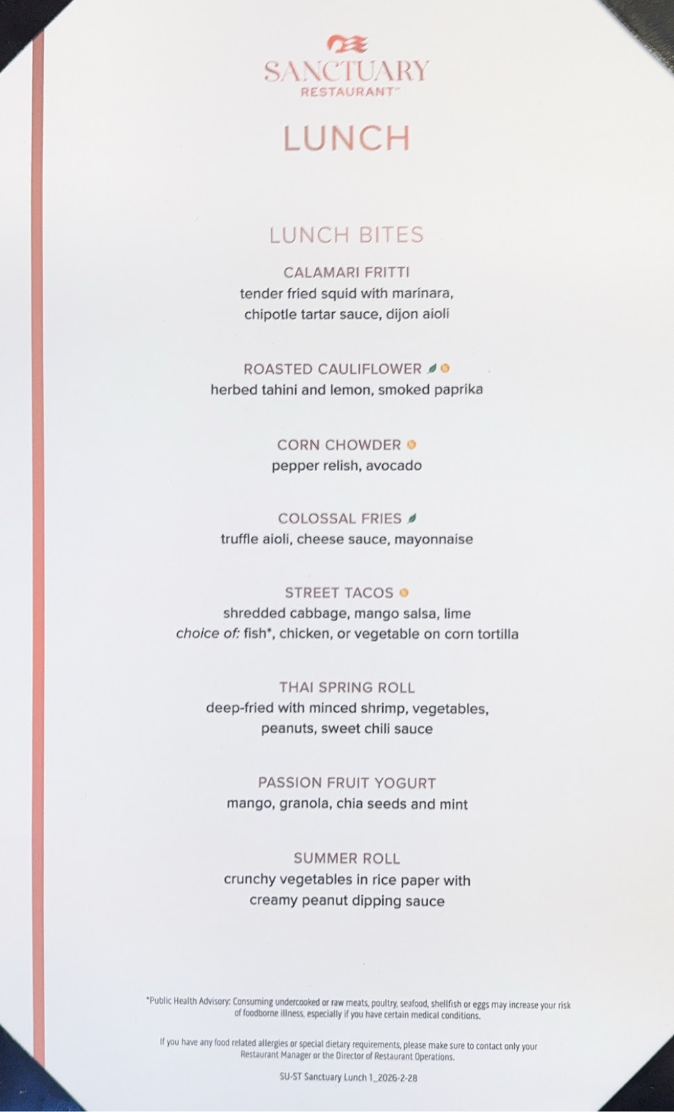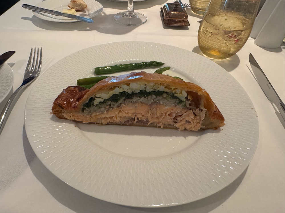 However, I had already gotten us a table in the Aurora Dining Room when G found me with this information, and we were hungry so we just ate lunch there. It was not the usual Embarkation Day menu, but something closer to, but not as extensive as the lunch menu we’ve seen on other ships. I ordered the quinoa salmon poke bowl and it was a disappointment. There was perhaps an ounce of salmon and had white rice instead of quinoa. Princess is getting fast and loose with its menu descriptions.