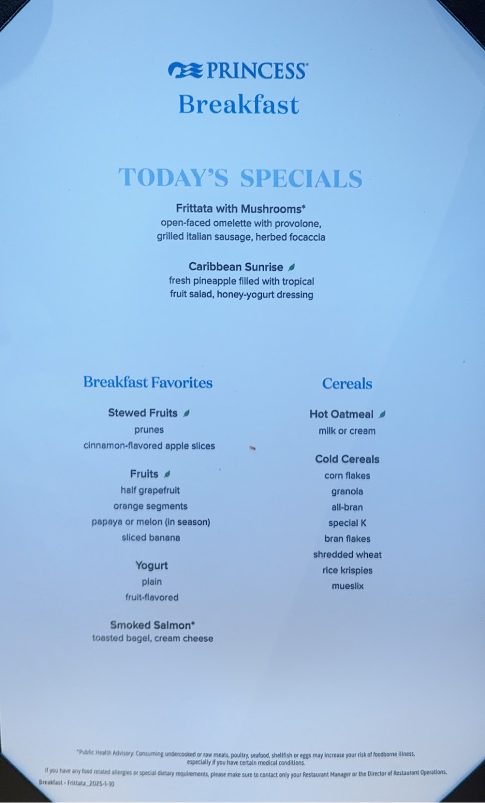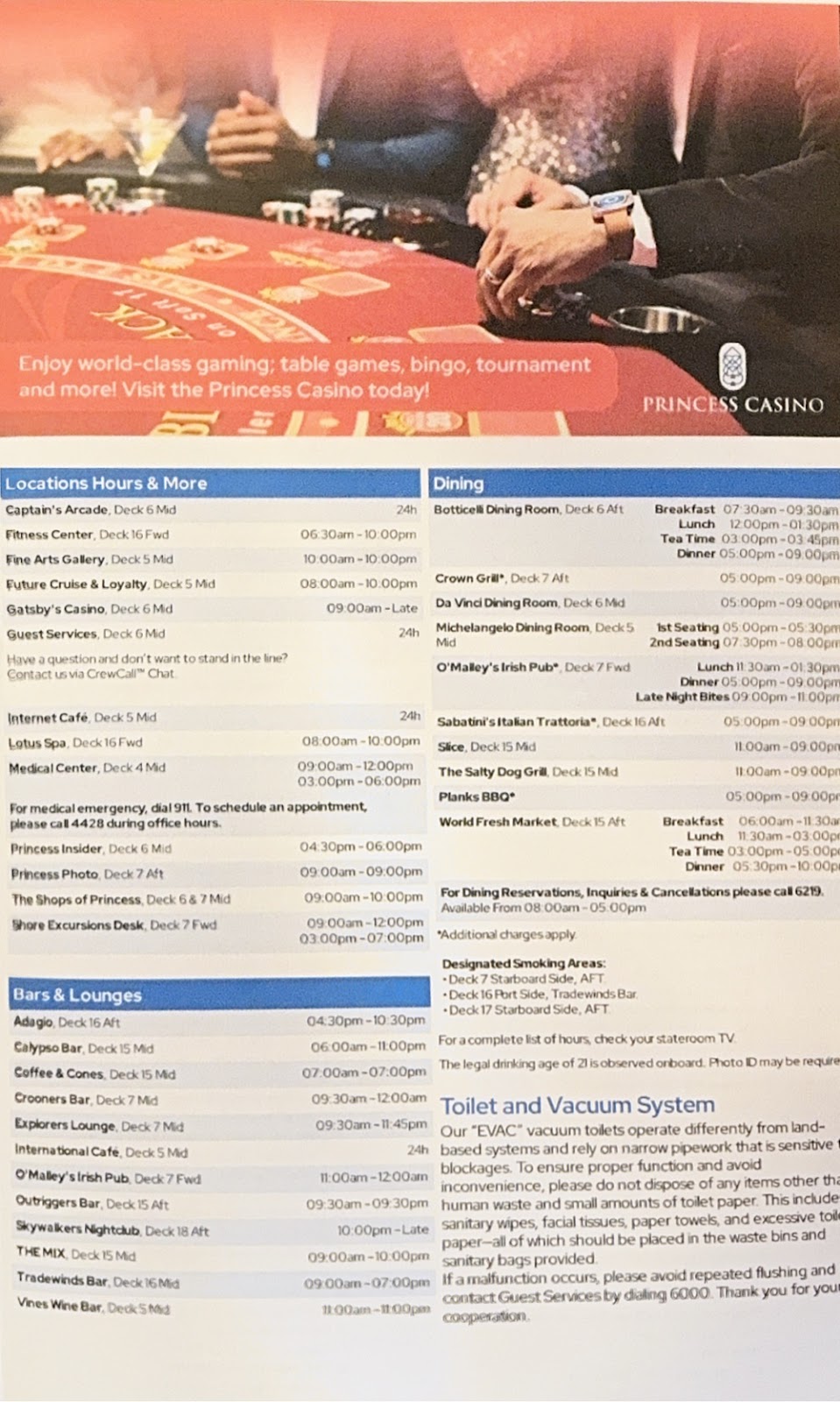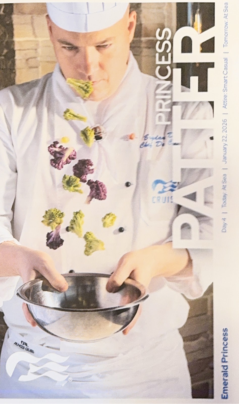 I noticed while we were in the Princess Theater awaiting tonight’s show with comedian/impressionist Jeff Burghart that I had missed another enrichment lecture on the history of Polynesia at 4pm. I should be able to catch it later this evening on our cabin TV. There simply aren’t enough hours in the day!