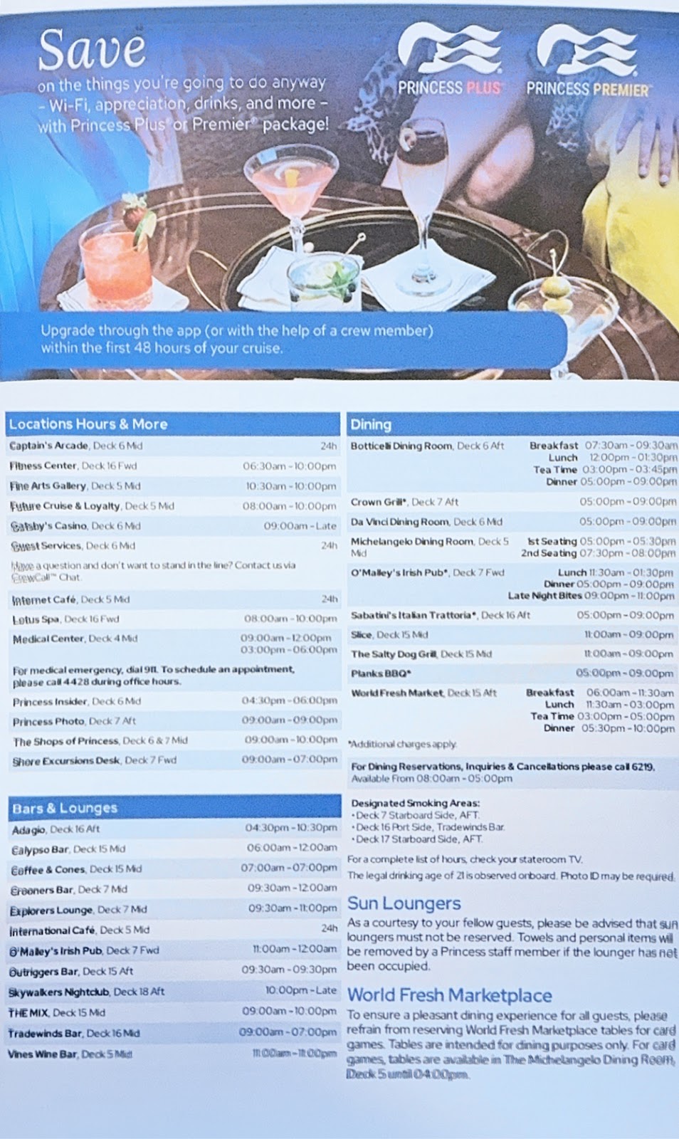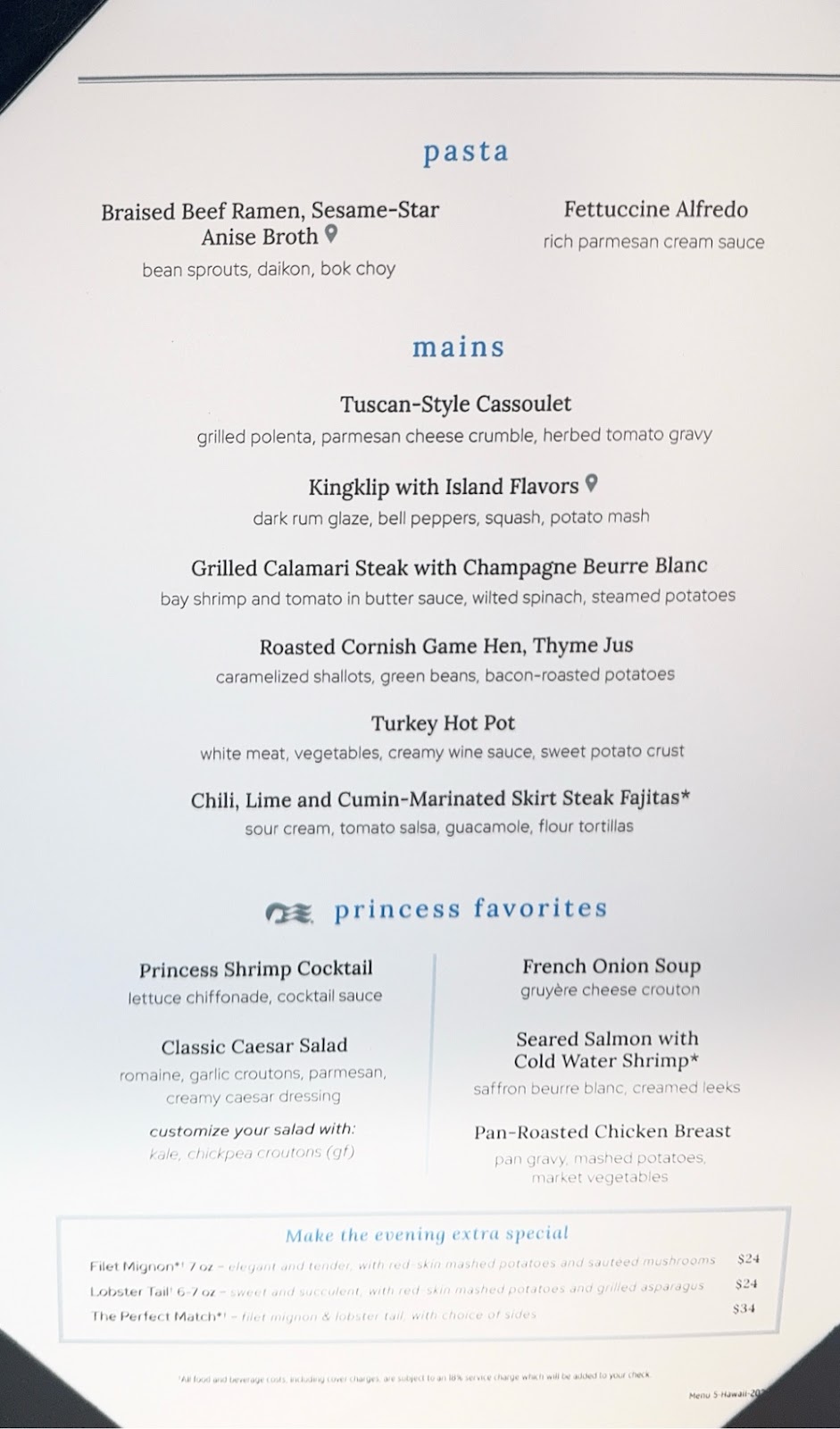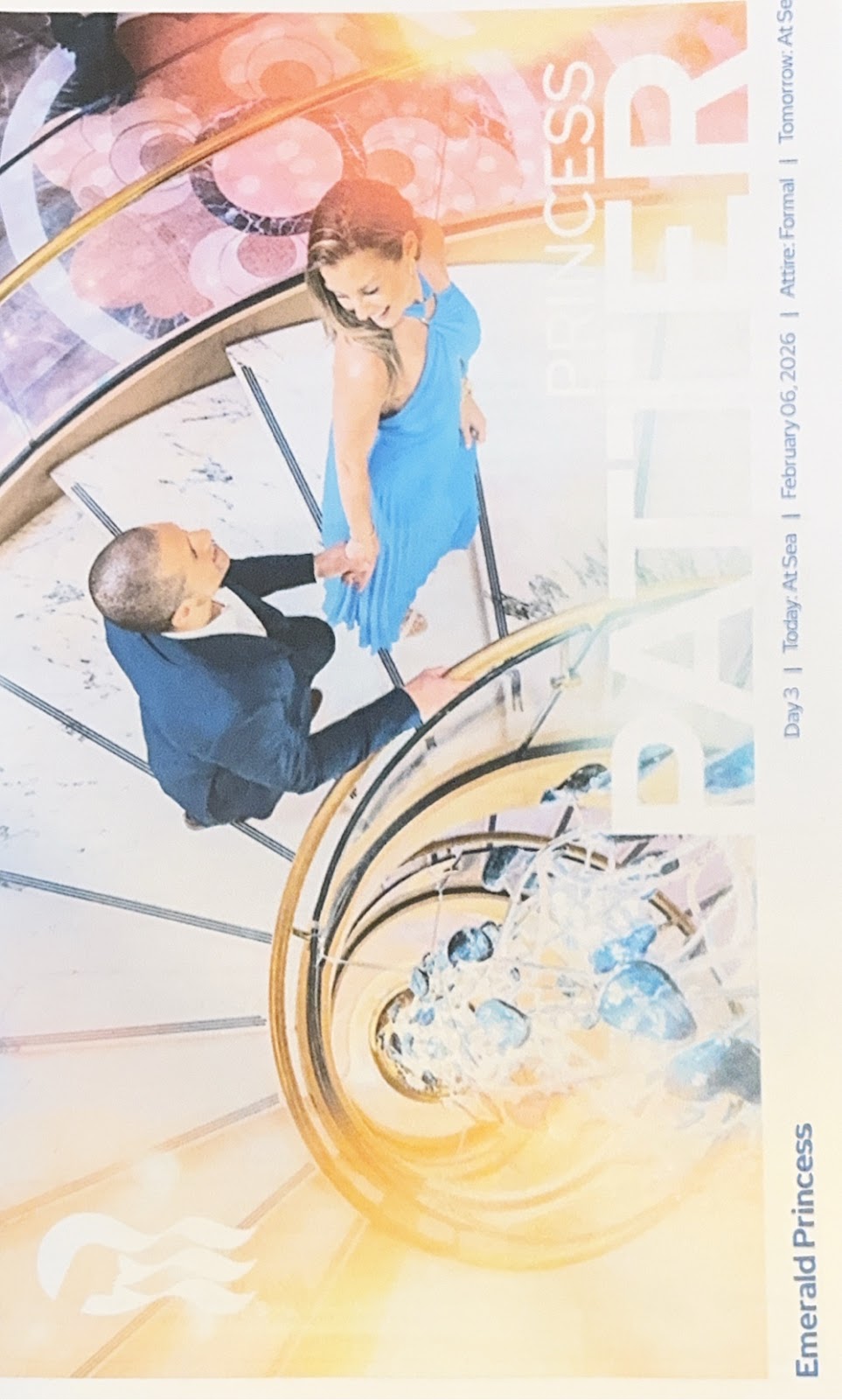 We met up for dinner in the Michelangelo Dining Room and, despite my appetite I ate lightly (salmon Caesar salad), not wanting to tempt fate as I sat in the Princess Theater for tonight’s show. Generally the front of the ship really bounces when it gets rough like this.