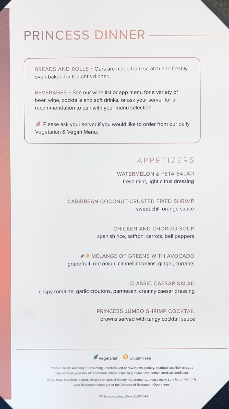 Just between you and me, I almost didn’t want to go on this cruise, for one reason only. When we booked this cruise, the only traditional dining that was available was a table for 6 at 7:30pm. That wouldn’t work on any count. I feared a repeat of our initial Emerald Princess experience, and our initial Ruby Princess experience and longed for the days when we booked a cruise and a traditional dining experience was pretty much guaranteed.