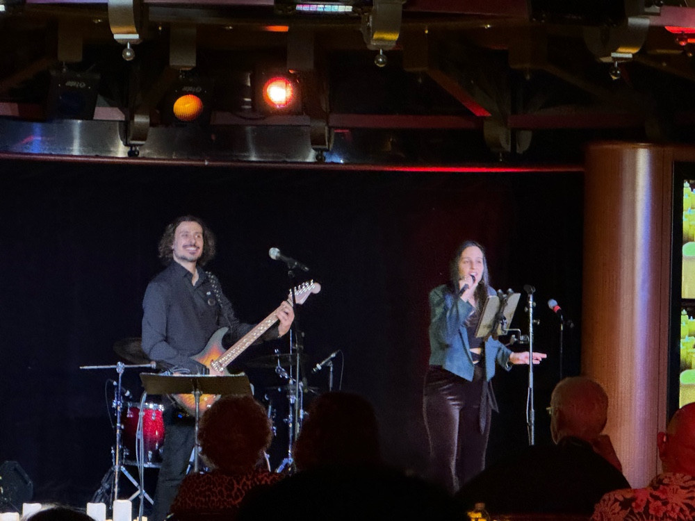 Then we went directly right to Club Fusion for another candlelight concert, this time by new (to us) Groovy Tunes Duo from Argentina. The guitarist’s skills are incredible, and they play more contemporary (ie Prince) music. If you get a chance to hear them on a ship…GO! Truly the best duo we’ve ever heard on Princess. Such a great venue for this type of concert, too.