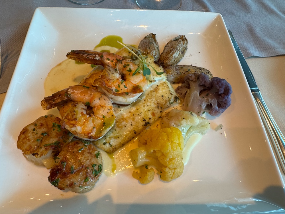 Halibut, shrimp and scallops entree