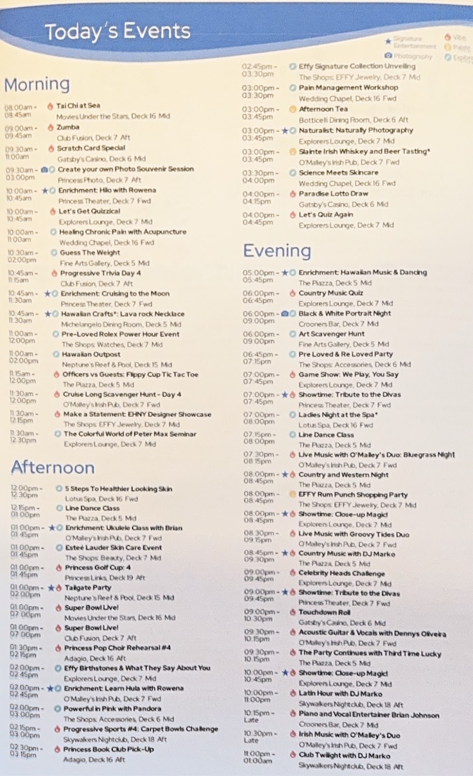 Unfortunately, rain showers passed over every so often and we traded wet pool towels for dry pool towels over and over and over again and it all felt very familiar. This was definitely not our first rodeo. In fact, we were remembering back to being on the Grand Princess for the first Super Bowl ever shown on MUTS, out of Galveston in 2005. There was a huge marketing campaign, that you could watch the Super Bowl on a drive in movie-type screen on a cruise ship, and it sure sucked us in.