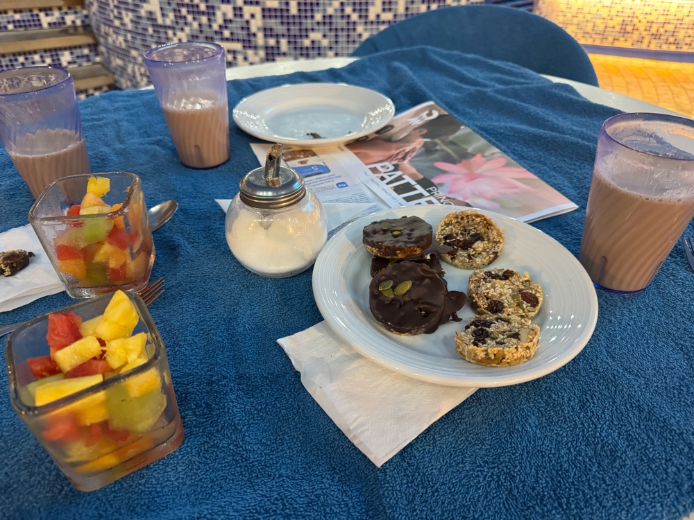 At 8am, MUTS started broadcasting Tai Chi, and I opened my eyes to see that we were surrounded by a few people partaking in that. G went to the International Cafe to get those muesli cakes we enjoy so much and I switched to drinking hot water with lemon and the hours passed.