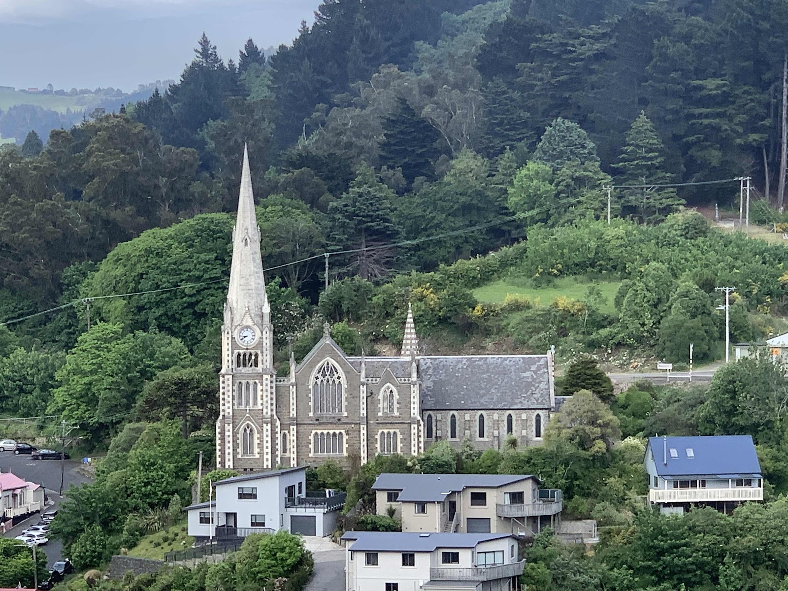 We had spectacular weather today, sunny and surprisingly warm. While we were on Deck 19, G suggested we could climb to a lookout on a nearby hill for a better view of the harbour. Now, I have only just recently removed one foot from the grave it was in, and he is sneezing and coughing, possibly on the way to feeling worse, and he wants to go climbing hills for exercise. I didn’t say a word, but my look must have adequately conveyed my displeasure with that idea, because he next suggested we take a local bus into the nearby town of Dunedin, instead.