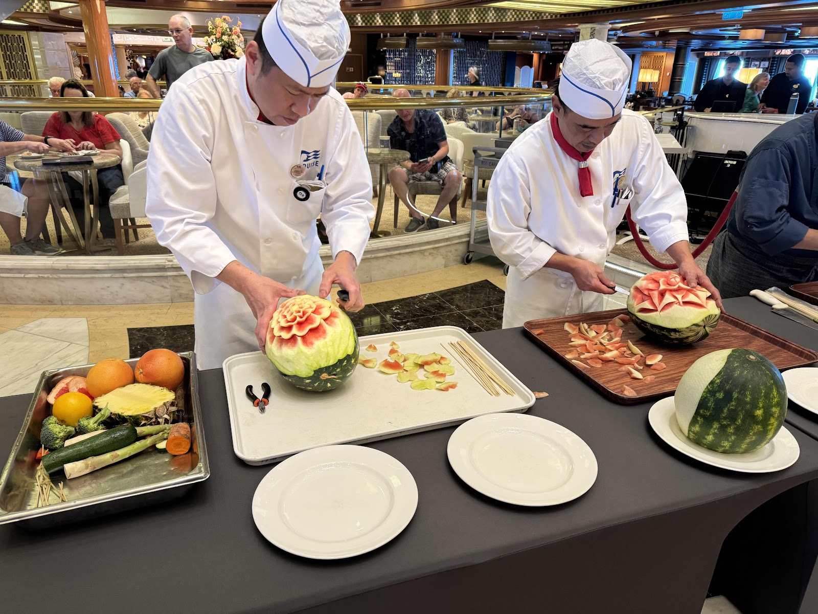 Fruit carving was taking place in the Piazza when I walked through there en route to a shop on board.