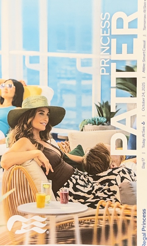 The abundance of coughs on board have made me reconsider the lectures I enjoy so much in the Princess Theater, and I planned to watch them later in the cabin. Instead, we spent a lot of time on the Horizon Terrace where there were also coughs but I convinced myself that they were being blown away by the breeze. The day was far more pleasant than we had initially believed it might be.