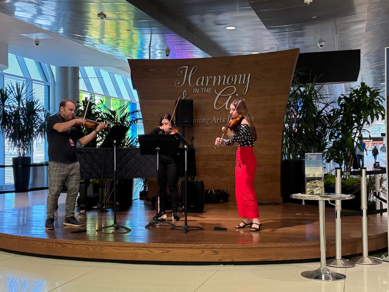 I walked a short distance into my terminal when I came across a string trio playing classical music and stayed until they finished their concert. Very unexpected! Very nice!