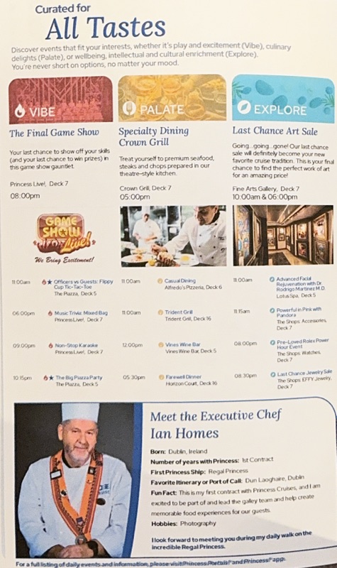 We couldn’t rely on those normal telltale signs that our cruise had come to an end, such as the thrusters spinning our ship into place at its berth, to act as our alarm this morning. Instead we set alarms on both phones and my iPad to make sure we didn’t miss our final Sabatini’s breakfast.
