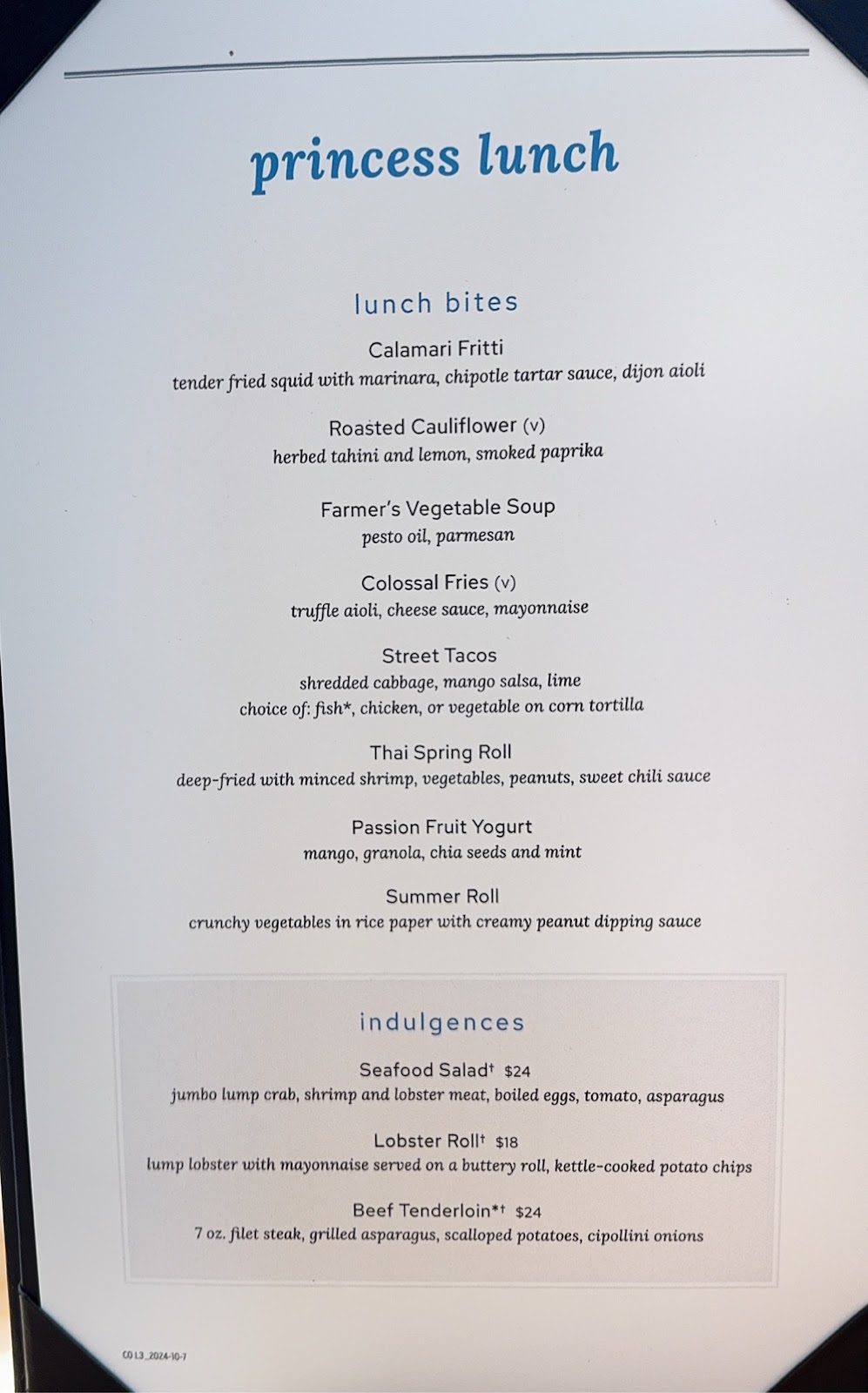 Lunch in the Botticelli Dining Room was up next, which a good thing, because that one tablespoon of cottage cheese didn’t have a lot of staying power.