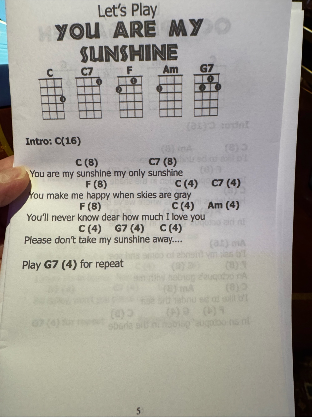 We started playing out of a songbook today, and I sent this pic to my guys. Our song. 😆 They want a video. I need to practice- a lot- first.